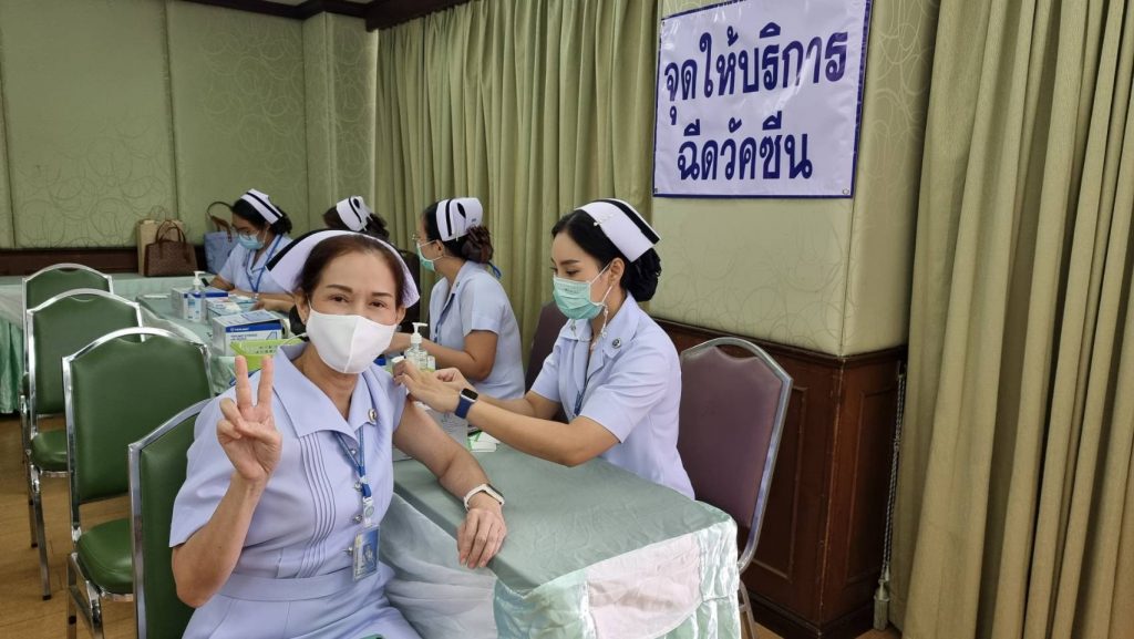 ซึ่งหากไม่มีความเสี่ยง ผู้เข้ารับการฉีดวัคซีนจะลงนามในใบยินยอมการรับวัคซีน และรับการฉีดวัคซีน โดยหลังการฉีดวัคซีนแล้วจะพักสังเกตอาการ 30 นาที ซึ่งเจ้าหน้าที่จะแนะนำให้สแกนแอปพลิเคชั่น “หมอพร้อม” ที่จุดตรวจสอบก่อนกลับ พร้อมรับเอกสารการปฏิบัติตัวหลังฉีดวัคซีน