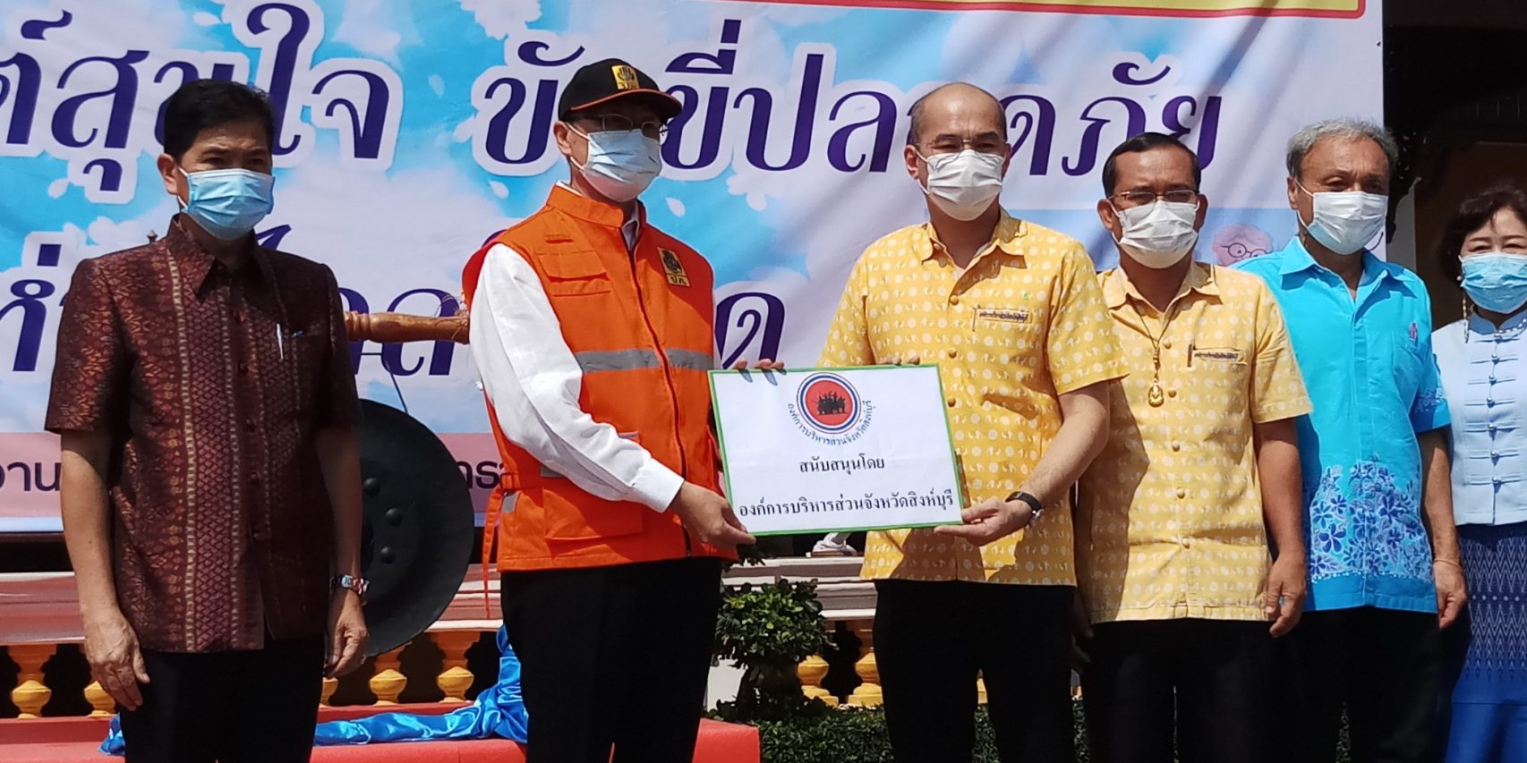 วันที่ 9 เมษายน 2564 เวลา 10.00 น. นายชำนาญวิทย์ เตรัตน์ ผู้ว่าราชการจังหวัดสิงห์บุรี เป็นประธานเปิดศูนย์ปฏิบัติการป้องกันและลดอุบัติเหตุทางถนนช่วงเทศกาลสงกรานต์ ปี 2564 “สงกรานต์สุขใจ ขับขี่ปลอดภัย ห่างไกลโควิด”ณ บริเวณศาลากลางจังหวัดสิงห์บุรี หลังเดิม รศ.130 โดย นางสาวนงเยาว์ เทพศิริ หัวหน้าสำนักงานป้องกันและบรรเทาสาธารณภัยจังหวัดสิงห์บุรี หัวหน้าส่วนราชการ ทหาร ตำรวจ ภาครัฐ รัฐวิสาหกิจ เอกชน อาสาสมัคร ประชาชน อาชีวศึกษา ภาคีเครือข่ายด้านความปลอดภัยทางถนน จำนวน 30 หน่วยงาน รวม 200 คน ร่วมกิจกรรมเปิดศูนย์ฯ พร้อมส่งมอบสิ่งของป้องกันลดอุบัติเหตุสนับสนุนศูนย์ปฏิบัติการฯจากส่วนราชการและเอกชน และประธานในพิธีปล่อยขบวนรถรณรงค์ประชาสัมพันธ์ลดอุบัติเหตุช่วงเทศกาลสงกรานต์ 2564 ในพื้นที่ทั้ง 6 อำเภอ ของจังหวัดสิงห์บุรี