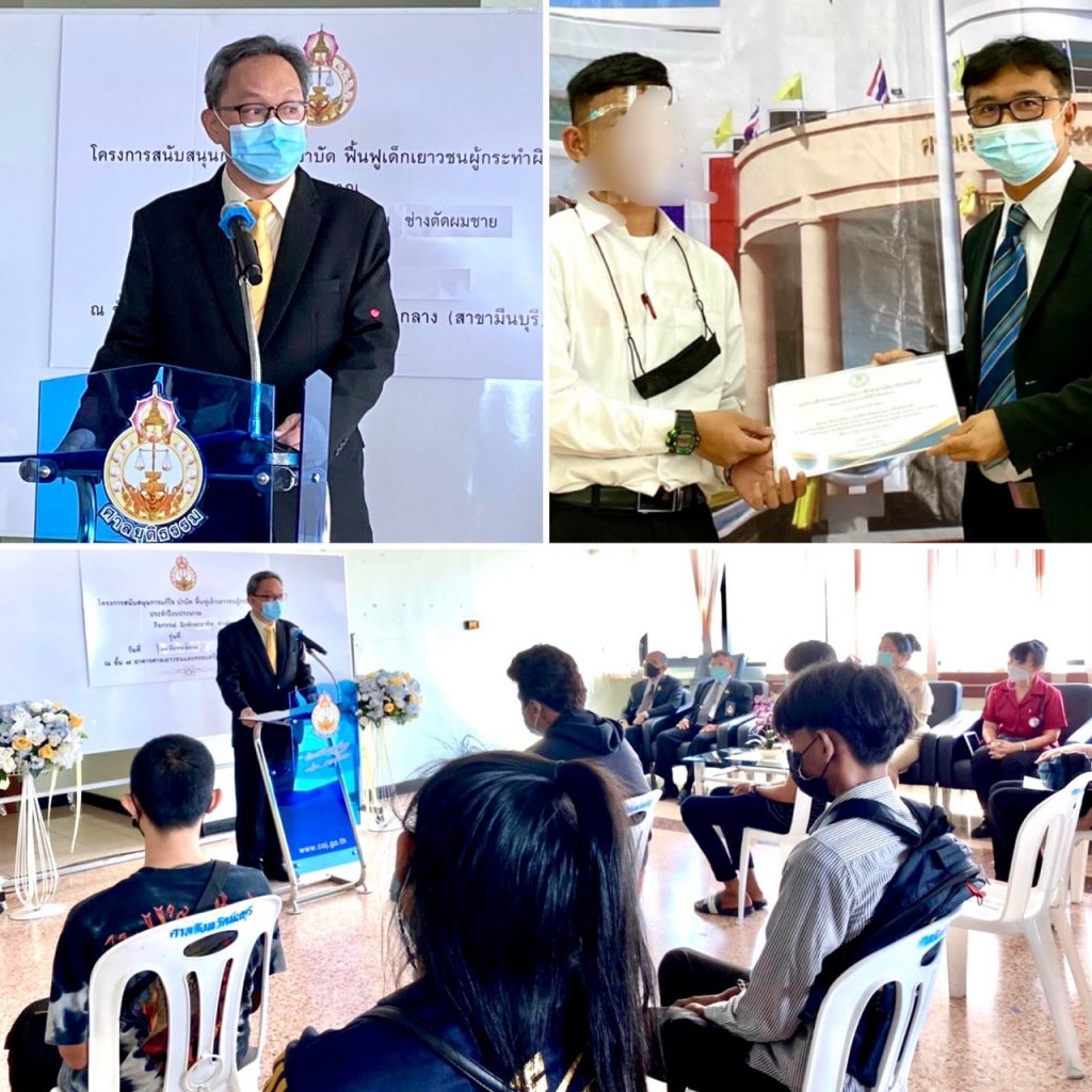 เมื่อเร็วๆนี้ นางอโนชา ชีวิตโสภณ อธิบดีผู้พิพากษา ศาลเยาวชนและครอบครัวกลาง มอบหมายให้ นายสุรเกียรติ อุทัยเชฏฐ์ ผู้อำนวยการสำนักอำนวยการประจำศาลเยาวชนและครอบครัวกลาง เป็นประธานเปิดกิจกรรมฝึกอาชีพและเทคโนโลยีสารสนเทศ โครงการสนับสนุนการแก้ปัญหา บำบัด ฟื้นฟู เด็กและเยาวชนผู้กระทำผิด ประจำปี 2564 ในกิจกรรมฝึกทักษะสอนอาชีพ ช่างตัดผมชาย รุ่นที่ 1 เริ่มเรียนวันที่ 29 มีนาคม-9 เมษายน 2564 รวม 56 ชั่วโมงแก่เยาวชน โดย นางกรรณกร ชูเทพ ผู้อำนวยการศูนย์การศึกษานอกระบบและการศึกษาตามอัธยาศัยเขตมีนบุรี ได้สนับสนุนวิทยากรผู้เชี่ยวชาญจากศูนย์ฝึกวิชาชีพระยะสั้น เขตมีนบุรี กรุงเทพมหานคร