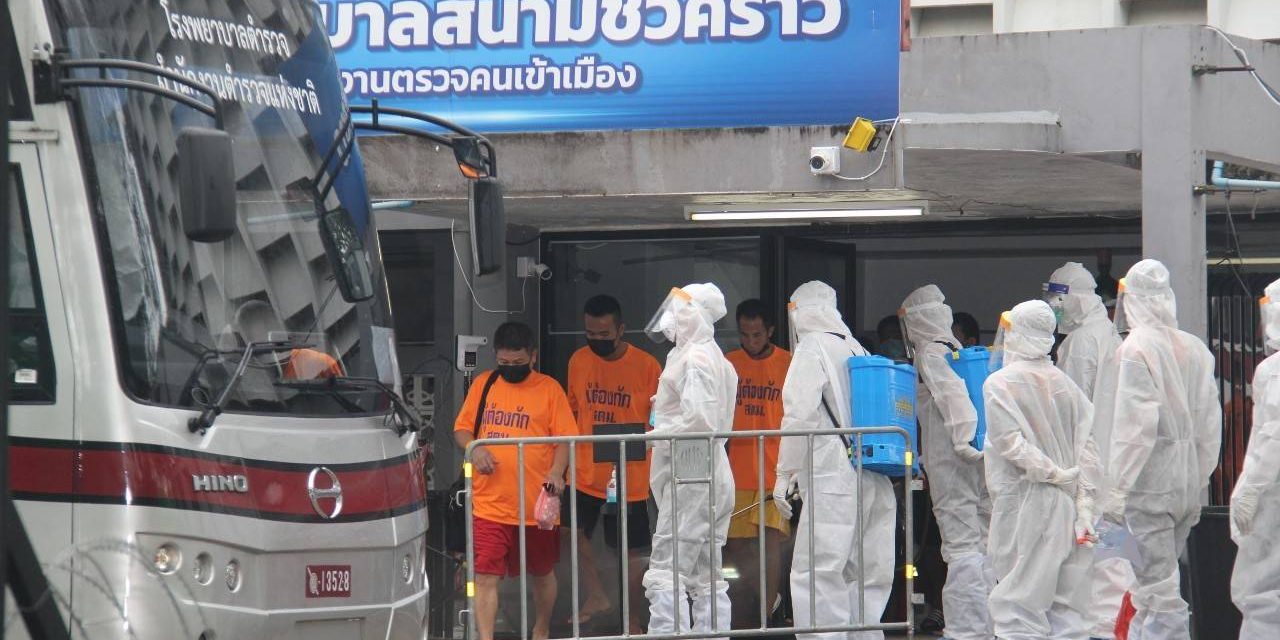 วันที่ 9 เม.ย.64 เวลา 14.00 น. ณ ที่ทำการโรงพยาบาลสนามชั่วคราว สตม. : นายแพทย์ปรีชา เปรมปรี รองอธิบดีกรมควบคุมโรค พร้อมด้วย พล.ต.ท.โสภณรัชต์ สิงหจารุ นายแพทย์ใหญ่ (สบ.8) รพ.ตร.,พล.ต.ท.สมพงษ์ ชิงดวง ผบช.สตม.,พล.ต.ต.อาชยน ไกรทอง รอง ผบช.สตม.,พล.ต.ต.พันธนะ นุชนารถ ผบก.สส.สตม.,พ.ต.อ.ภัคพงศ์ สายอุบล รอง ผบก.ตม.1/รองโฆษก สตม.พร้อมด้วยหน่วยงานที่เกี่ยวข้อง เดินทางมาตรวจดูขั้นตอนการเคลื่อนย้ายผู้ต้องกักที่รักษาตัว ณ รพ.สนามชั่วคราวของ สตม. จนหายจากเชื้อไวรัสโควิด-19 จำนวนกว่า 80 ราย นำกลับไปกักตัวที่ห้องกักสำนักงานตรวจคนเข้าเมือง (สวนพลู) เพื่อรอการส่งกลับประเทศต้นทางตามกระบวนการต่อไป