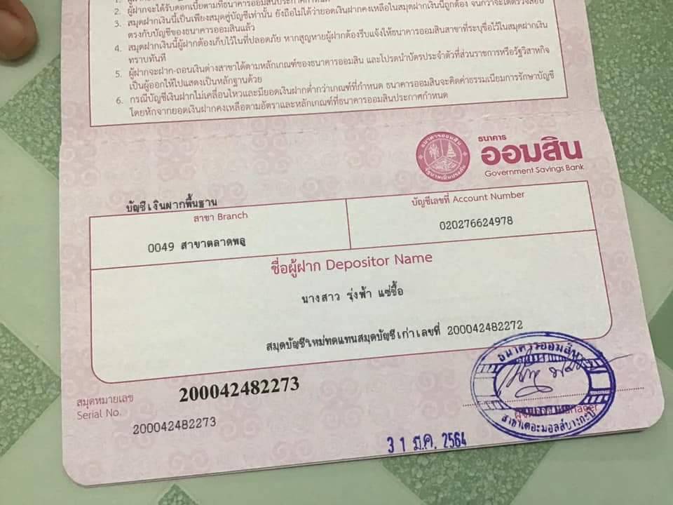 บัญชีธนาคารออมสิน 020276624978 สาขาตลาดพลู