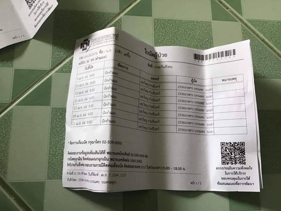 2.ค่าเดินทางไปรักษาพยาบาล (จะต้องล้างแผลทุกวัน แผลติดเชื้อง่าย) ค่ารักษาพยาบาลในขณะนี้ยังสามารถใช้สิทธิ์ประกันสังคมได้อยู่ ในเบื้องต้น