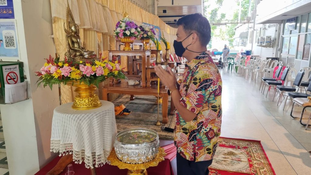นายแพทย์เมธี วงศ์เสนา ผู้อำนวยการโรงพยาบาลมะเร็งลพบุรี นำคณะแพทย์ พยาบาล พร้อมด้วย ผู้ป่วยมะเร็งญาติผู้ป่วย และเจ้าหน้าที่ของโรงพยาบาลมะเร็งลพบุรี ที่ไม่สามารถเดินทางกลับไปร่วมฉลองสงกรานต์กับครอบครัว ตามภูมิลำเนาได้ เนื่องจากผู้ป่วยส่วนใหญ่ยังต้องอยู่ในความดูแลของแพทย์ ประกอบกับการเกิดสถานการณ์การแพ่ระบาดของโรคโควิด 19 ระลอกใหม่ จึงได้ร่วมกันประกอบพิธีทำบุญ วิถีใหม่ และสรงน้ำของพรพุทธรูปศักดิ์สิทธิ์ประจำโรงพยาบาล เพื่อความเป็นสิริมงคลต่อตนเองและครอบครัว เนื่องในโอกาสวันสงกรานต์ และวันขึ้นปีใหม่ของไทย โดยงดกิจกรรมรดน้ำขอพรผู้ใหญ่ และคณะที่ปรึกษา หรือบุคลากรทางการแพทย์ เหมือนทุกปีที่ผ่านมา เปลี่ยนรูปแบบเป็นการส่งมอบพวงมาลัยดอกมะลิ และผ้าขาวม้า เป็นของที่ระลึกแทนในวันสงกรานต์และวันครอบครัวประจำปี 2564 เพื่อลดความเสี่ยงต่อการติดเชื้อโควิด 19 ในสถานพยาบาล
