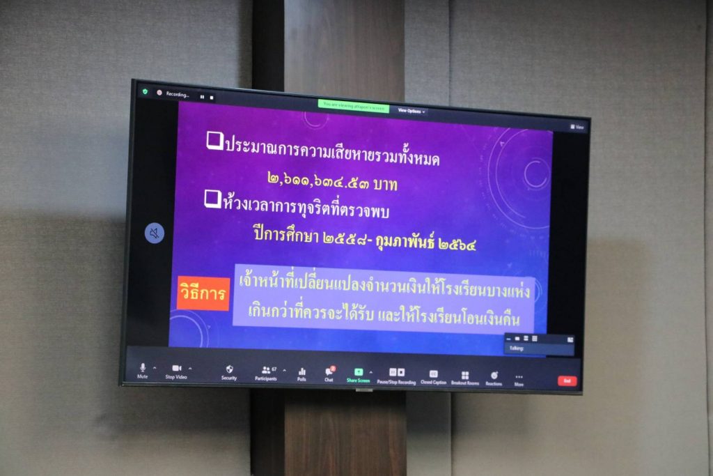 ซึ่งขณะนี้ได้มีการดำเนินการต่อเจ้าหน้าที่ผู้กระทำผิดและผู้เกี่ยวข้อง โดย สช.ออกคำสั่งพักราชการ ตั้งแต่วันที่ 16 เมษายน 2564 เสนอ อ.ก.พ.กระทรวง พิจารณาโทษทางวินัยเจ้าหน้าที่ผู้ทุจริต เสนอปลัดกระทรวงศึกษาธิการมอบหมายให้นิติกร ส9.ไปแจ้งความดำเนินคดีกับผู้ทุจริตและผู้เกี่ยวข้อง พร้อมทั้งเสนอปลัดกระทรวงศึกษาธิการแต่งตั้งคณะกรรมการสอบหาผู้รับผิดทางละเมิดต่อไป เลขาธิการ (กช.) กล่าวทิ้งท้าย