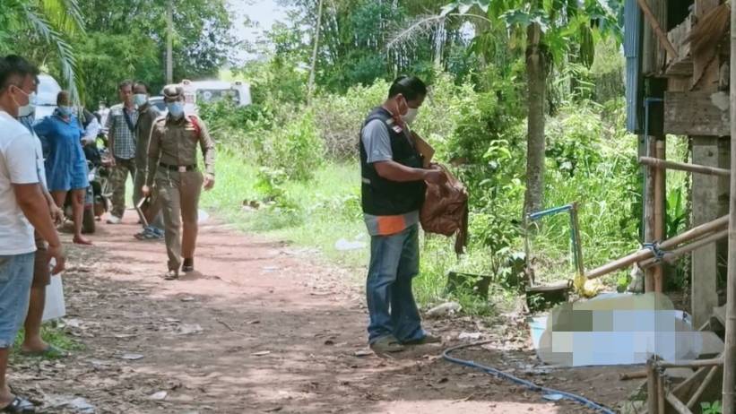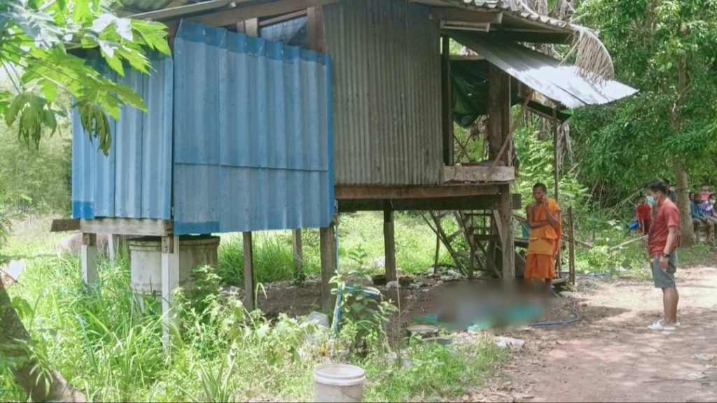 พบว่าบนบ้านมีไม้ไผ่ที่ทำราวกั้นไว้หักคาดว่าผู้เสียชีวิตน่าจะใช้สายไฟผูกคอรัดกับขื่อบนบ้าน แต่น้ำหนักตัวมากทำให้สายไฟขาดและตกลงมาจากชั้นบนที่มีความสูง 2 เมตร ทำให้ผู้เสียชีวิตมีอาการจุกหายใจไม่ออกและคานมาเพื่อที่จะจับต้นเสาแต่ปรากฏว่าสิ้นใจตายเสียก่อน พระศรายุทธ อาภัสสโร(พระลูกชาย) ที่บวชจำพรรษาอยู่ที่วัดในหมู่บ้านกล่าวว่า หลังจากได้ทราบข่าวจากญาติจึงมาดูศพพ่อที่เสียชีวิตอยู่ที่บ้าน โยมพ่ออยู่บ้านคนเดียวแยกทางกับโยมแม่ลูกได้ไปทำงานต่างถิ่นกันหมด ต้นบวชเป็นพระอยู่ที่วัดข้างบ้านลูกๆทุกคนแวะเวียนมาดูแลพ่ออยู่บ่อยๆโยมพ่อมีโรคประจำตัวเป็นโรคมะเร็งตับ ไม่คิดว่าโยมพ่อจะคิดสั้นแบบนี้ขอให้ดวงวิญญาณของพ่อไปสู่สุขติ…