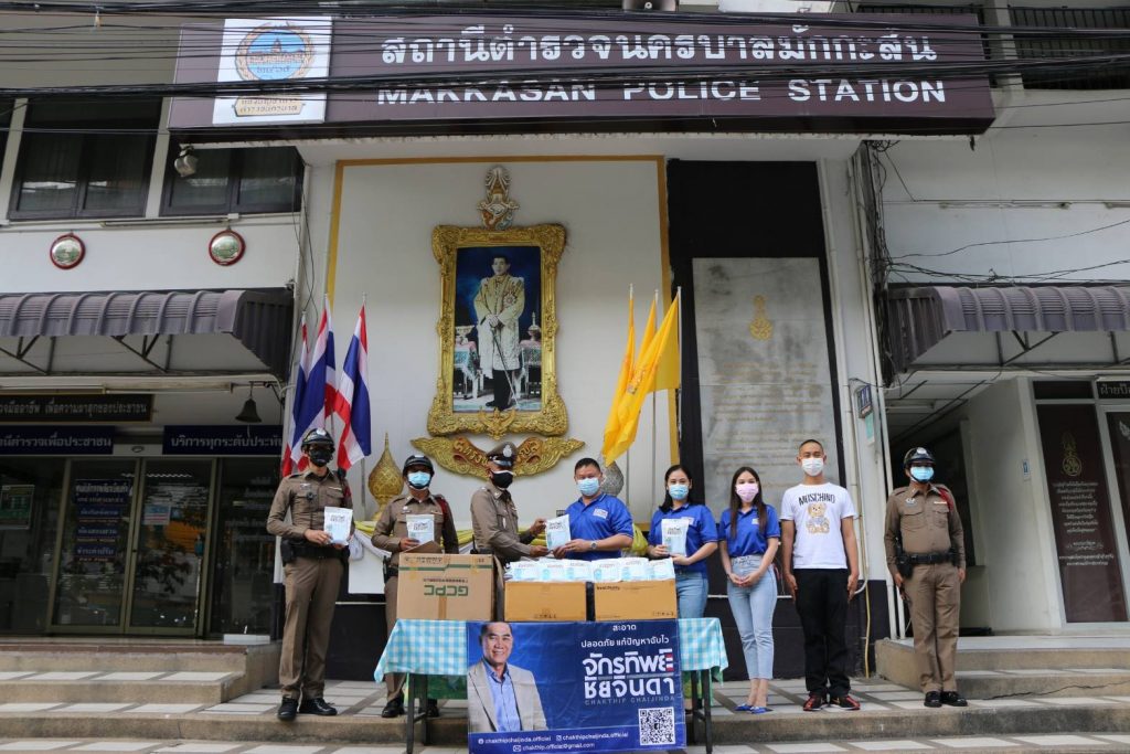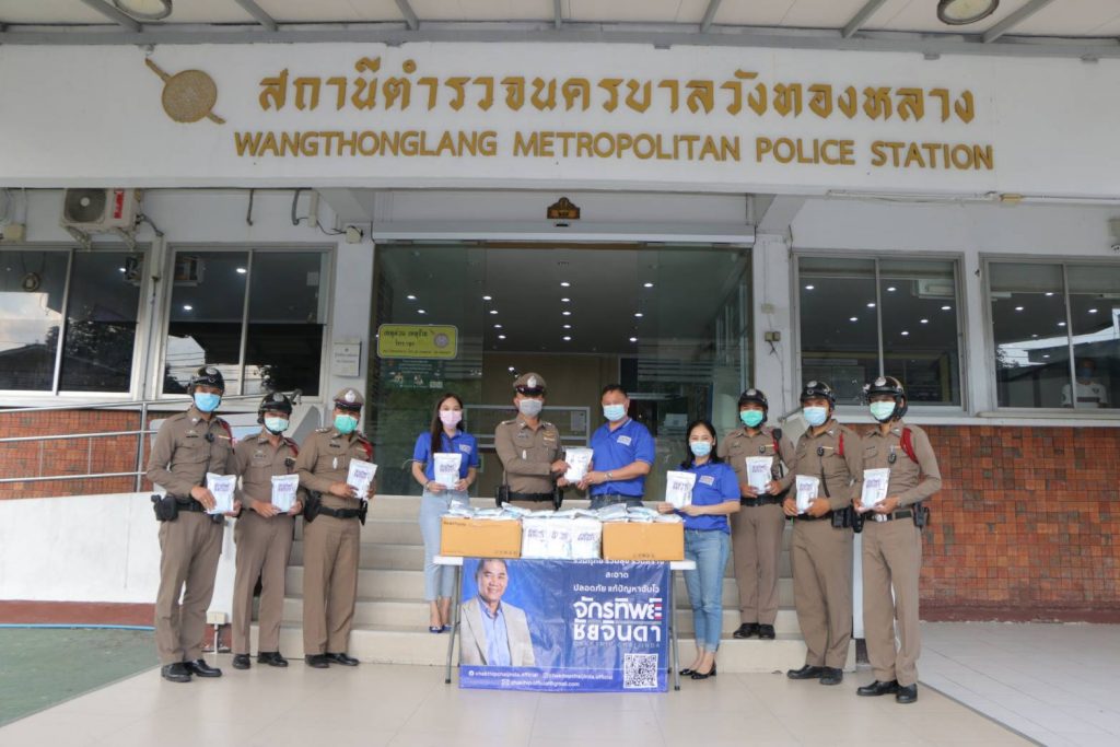 นอกจากนี้ พล.ต.อ.จักรทิพย์ ชัยจินดา ได้มีความห่วงใย เจ้าหน้าที่ตำรวจที่ปฏิบัติหน้าที่ดูแลพี่น้องประชาชนในช่วงวิกฤติโควิด-19 ที่กำลังแพร่ระบาดระลอกใหม่ จึงได้มอบหมายให้ ดร.หิมาลัย ผิวพรรณ พร้อมทีมงาน นำหน้ากากอนามัย เจลแอลกอฮอล์ ไปมอบให้กับเจ้าหน้าที่ตำรวจที่ปฏิบัติหน้าที่ตามสถานีตำรวจนครบาลต่างๆ อีกจำนวน 3 แห่ง ได้แก่ สถานีตำรวจนครบาลมักกะสัน โดยมี พ.ต.ต.ประเสริฐ วงศ์เจริญ สวป.สน.มักกะสัน เป็นตัวแทนรับมอบ,สถานีตำรวจนครบาลทองหล่อ โดยมี พ.ต.ท.ธนาธิป ชมภูนิส สวป สน.ทองหล่อ รรท.รอง ผกก.ป.สน.ทองหล่อ เป็นตัวแทนรับมอบ และ สถานีตำรวจนครบาลวังทองหลาง โดยมี พ.ต.ท.อังกูร เอี่ยมโพธิ์ สวป.สน.วังทองหลาง รรท.รอง ผกก.ป.สน.วังทองหลาง เป็นตัวแทนรับมอบ เพื่อให้เจ้าหน้าที่ตำรวจใช้ป้องกันในขณะปฏิบัติหน้าที่ดูแลพี่น้องประชาชนในช่วงสถานการณ์การแพร่ระบาดของโรคติดเชื้อไวรัสโคโรนา 2019 (COVID-19) ที่กำลังแพร่ระบาดเป็นวงกว้างและมีจำนวนผู้ติดเชื้อเพิ่มขึ้นอย่างต่อเนื่อง “เราจะสู้และผ่านวิกฤติโควิด-19ไปด้วยกัน”