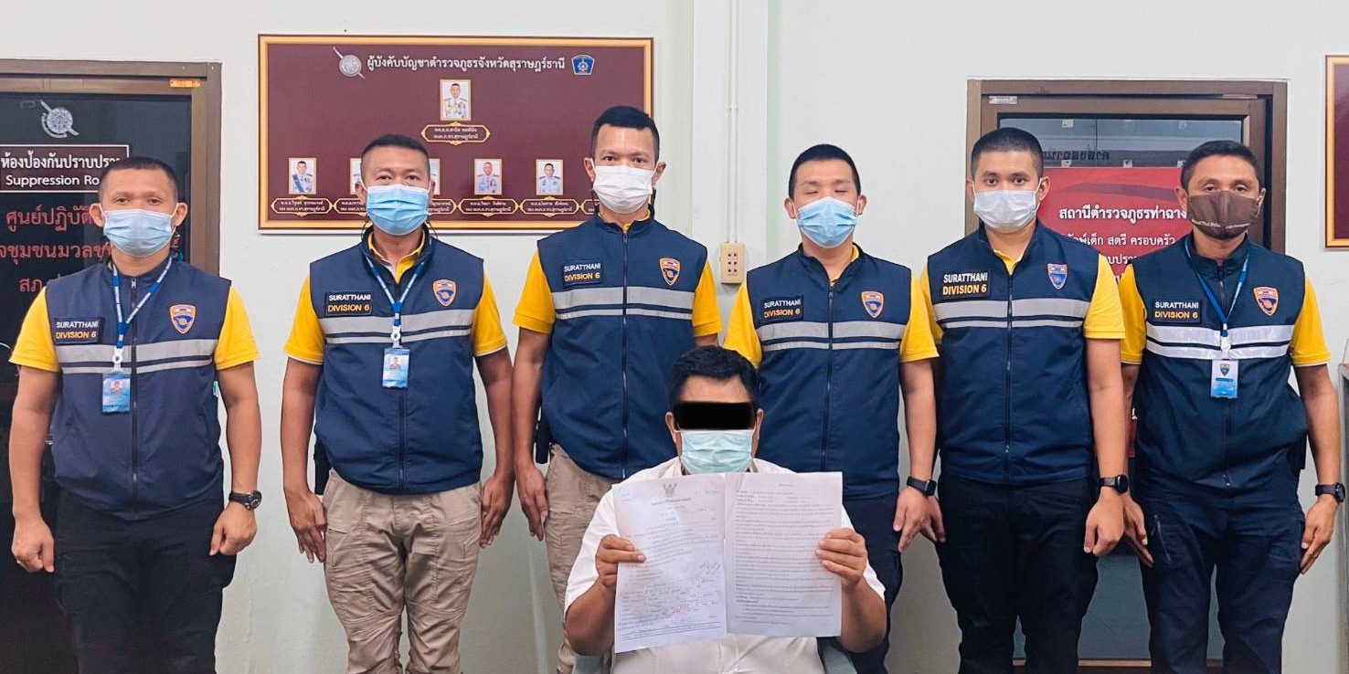โดยในวันนี้ วันที่ 19 เมษายน 2564 ภายใต้การอำนวยการของ พล.ต.ต.สุเมธ เมฆขจร ผบก.ตม.6 พร้อมด้วย พ.ต.อ.ศุภฤกษ์ พันธ์โกศล ผกก.ตม.จ.สุราษฎร์ธานี,พ.ต.ท.ชาตรี ชูแก้ว รอง ผกก.ตม.จ.สุราษฎร์ธานี,พ.ต.ท.ธีระวัฒน์ อำนาจเจริญยิ่ง สว.ตม.จ.สุราษฎร์ธานี,ร.ต.อ.สิริวัฒน์ สมหวัง รอง สว.ตม.จ.สุราษฎร์ธานี,ด.ต.พงษ์ศักดิ์ พัฒน์คง และ ด.ต.รังสรรค์ ศรีเมือง ผบ.หมู่ ตม.จ.สุราษฎร์ธานี ร่วมกันสืบสวนขยายผล กรณีจับกุมขบวนการลักลอบขนแรงงานต่างด้าวผิดกฎหมาย จนกระทั่งสามารถขออนุมัติศาลจังหวัดไชยา ออกหมายจับ Mr.Kyaw Thet OO หรือนายจอเท็ทอู อายุ 46 ปี สัญชาติเมียนมา ในความผิดฐาน “เป็นผู้ใช้ให้ผู้อื่นให้คนต่างด้าวเข้าพักอาศัย ซ่อนเร้น หรือช่วยเหลือด้วยประการใดๆ เพื่อให้คนต่างด้าวนั้นพ้นจากการจับกุม โดยรู้ว่าคนต่างด้าวนั้นเข้ามาในราชอาณาจักรโดยผิดกฎหมาย” ตามหมายจับศาลจังหวัดไชยา ที่ จ.24/2564 ลงวันที่ 16 เมษายน 2564