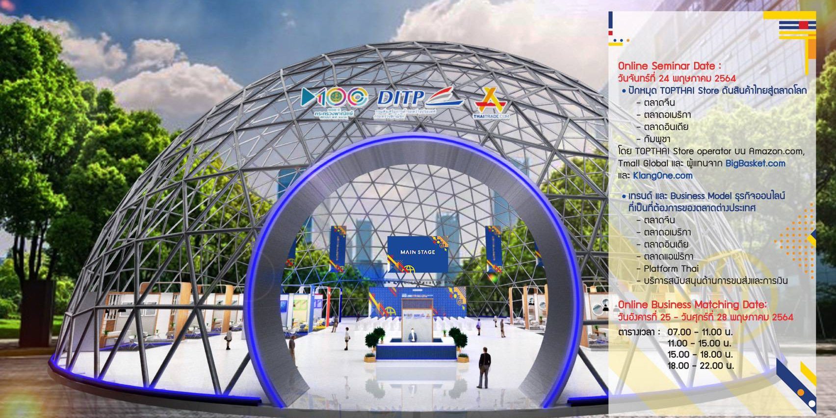 เนื่องจากมีงบประมาณจำกัด และยังอาจขาดความรู้ด้านการตลาดออนไลน์ในต่างประเทศภายในงาน ผู้ประกอบการไทยจะได้รับฟังเทรนด์สินค้าออนไลน์ และโมเดลธุรกิจที่สำคัญในรูปแบบ Virtual Online Seminar ตลอดจนจับคู่ธุรกิจการค้าการยี่ปั๊วออนไลน์ในรูปแบบ Online Business Matching กับยี่ปั๊วออนไลน์กว่า 70 ราย จากแพลตฟอร์ม e-Commerce และ e- Retailers ทั่วโลก เพื่อทำการซื้อสินค้าไทยจากผู้ประกอบการไทยโดยตรง คัดเลือกสินค้าไทยที่มีศักยภาพตรงตามความต้องการของตลาดกลุ่มเป้าหมายนำไปจำหน่ายบนแพลตฟอร์มออนไลน์ระดับโลกได้แก่ Tmall (แพลตฟอร์ม e-commerce ที่ใหญ่ที่สุดในตลาดจีน) www.didiglobal.com (แพลตฟอร์ม Ridesharing อับดับ 1 และ Community Based Grocery e-Commerce ชั้นนำในจีน) Amazon.com (อันดับหนึ่งในตลาดอเมริกา) bigbasket.com (แพลตฟอร์มซุปเปอร์มาร์เก็ตออนไลน์อันดับหนึ่งในตลาดอินเดีย) รวมถึงแพลตฟอร์ม klangthai.com (ตลาด CLMV) และอีกหลากหลายประเทศทั่วโลก อาทิ อาร์เจนตินา,สาธารณรัฐเช็ก,เดนมาร์ก,เยอรมนี,อิตาลี,รัสเซีย,ไต้หวัน,เวียตนาม และ ไนจีเรีย ฯลฯ
