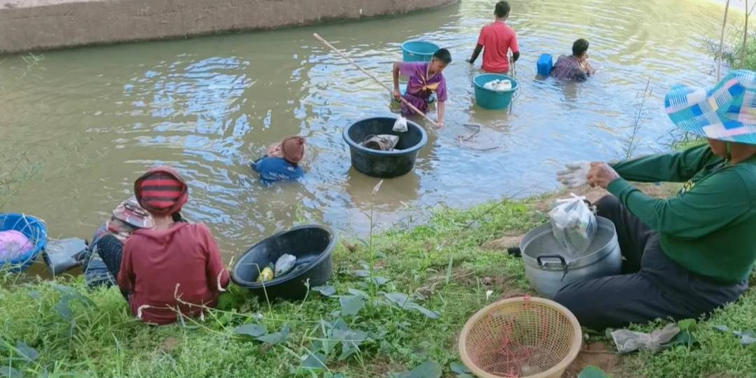 วันที่ 19 เย.64 ที่แควพระปรงชาวบ้าน ต.ย่านรี อ.กบินทร์บุรี จ.ปราจีนบุรี กลัวการแพร่ระบาดโรคโควิด-19 ไม่กล้าที่จะออกจากหมู่บ้านพากันออกหางมหอยในแควพระปรงมาประกอบอาหารในครัวเรือน และขายให้กับพ่อค้าแม่ค้าที่ตลาดนัดเพื่อเพิ่มรายได้ในครัวเรือน น้ำในแควลึกประมาณ 4 เมตร มีหาดทรายพอจะลงหางมหอยได้การลงน้ำหางมหอยในแควที่มีน้ำลึกชาวบ้านจะนำแกนลอนขนาด 5 ลิตร 2 ใบ แล้วใช้เชือกผูกติดกันแล้วคล้องคอลงไปในน้ำเพื่อช่วยพยุงตัวลอยน้ำได้ หอยที่ชาวบ้านหางม
