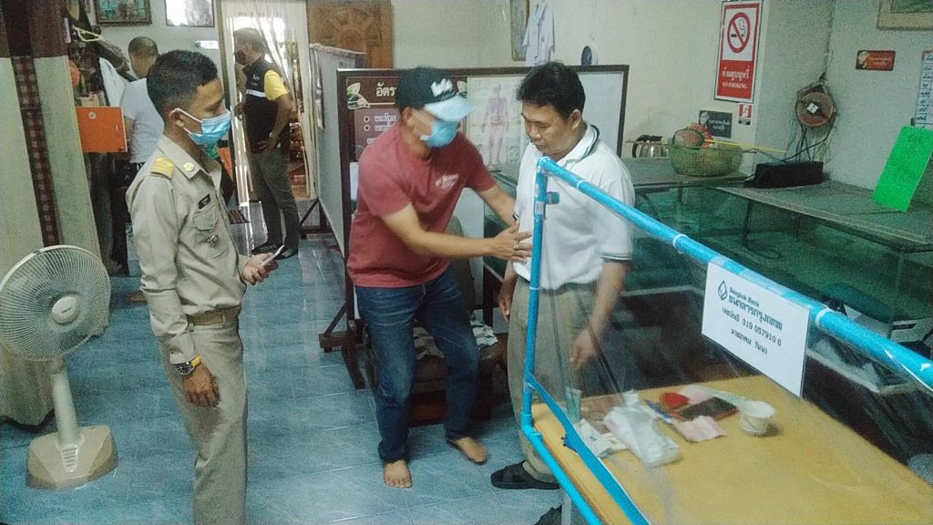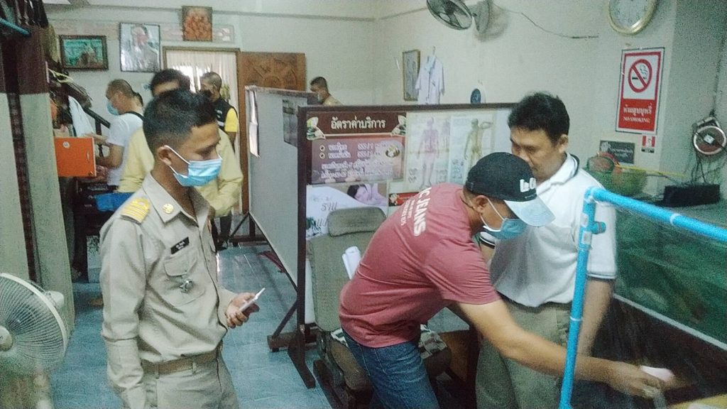 กอ.รมน.จังหวัด ส.ต. ได้รับการร้องเรียนร้องทุกข์ผ่านช่องทางสายด่วนความมั่นคง 1374 กอ.รมน. รับแจ้งเหตุความมั่นคง (Coll center 1374 กอ.รมน. รับแจ้งเหตุความมั่นคง) จากพลเมืองดี ว่ามีบุคคลชายไทย อายุ ประมาณ 65 ปี รูปร่างสันทัด ผิวขาว ผมสั้น เปิดร้านนวดแผนโบราณชื่อ “อาเสียน แดนใต้”ตั้งอยู่บ้านเลขที่ 95/88 ถ.สฤษดิ์ภูมินารถ ซ.12 ต.พิมาน อ.เมือง จ.สตูล มีพฤติกรรมน่าสงสัย ซึ่งอาจจะเข้าข่ายการหลอกลวงประชาชน และประกอบอาชีพที่ผิดกฎหมาย ซึ่งอาจจะส่งผลกระทบต่อสุขภาพอนามัยของประชาชนผู้มาใช้บริการสถานประกอบการดังกล่าว กอ.รมน.จังหวัดสตูล ร่วมกับ สนง.สสจ.สตูล, ป้องกันจังหวัดสตูล, สภ.เมืองสตูล และ ฝ่ายปกครอง อ.เมืองสตูล ดำเนินการตรวจสอบข้อเท็จจริงตามข้อร้องเรียนผ่านช่องทางสายด่วนความมั่นคง 1374 กองอำนวยการรักษาความมั่นคงภายในราชอาณาจักร ตรวจพบร้านนวดแผนโบราณชื่อ “เสียน แดนใต้” ตั้งอยู่บ้านเลขที่ 95/88 ถนนสฤษดิ์ภูมินารถ ซอย 12 ต.พิมาน อ.เมืองสตูล จ.สตูล ผลการตรวจสอบภายในบ้านดังกล่าวพบ นายอาคม วันนา อายุ 62 ปี อยู่บ้านเลขที่ 32 ถ.ภูมินารถภักดี 2 ต.พิมาน อ.เมืองสตูล จ.สตูล และ นางไหมกาญจณ์ แก้วประมูล อายุ 59 ปี อยู่บ้านเลขที่ 86/61 ถ.สฤษดิ์ภูมินารถ ต.พิมาน อ.เมืองสตูล จ.สตูล โดยมีนายอาคม วันนา รับเป็นเจ้าของกิจการสถานประกอบการเพื่อสุขภาพ ในบ้านหลังดังกล่าว พร้อมกับตรวจพบสิ่งของอุปกรณ์ซึ่งตกเป็นของกลาง จำนวน 7 รายการ ยาสมุนไพรสีน้ำตาล จำนวน 11 ห่อ, ยาแผนปัจจุบันจัดเป็นชุด ประกอบด้วย สีเหลืองกลม 2 เม็ด สีเหลืองห้าเหลี่ยม 1 เม็ด สีเขียวกลมรีรูปไข่ 1 เม็ด สีเหลืองนวล 1 เม็ด รวมจำนวน 1,924 ชุด, ยาแผนปัจจุบันจัดเป็นชุด ประกอบด้วย สีเหลืองกลม 2 เม็ด สีเหลืองห้าเหลี่ยม 1 เม็ด และสีขาว 1 เม็ด 3 ชุด รวมจำนวน 19 ชุด,ยาแผนปัจจุบันจัดเป็นชุด ประกอบด้วยสีเหลืองกลม 2 เม็ด สีเหลืองห้าเหลี่ยม 1 เม็ด และเม็ดขาวกลม ๑ เม็ด รวมจำนวน 3 ชุด, ปืนพกสั้นยี่ห้อ colt ขนาด 11 มม. จำนวน 1 กระบอก ไม่ทราบหมายเลขทะเบียน, เครื่องกระสุนขนาด 11 มม. จำนวน 13 นัด,ซองกระสุน จำนวน 1 ซอง