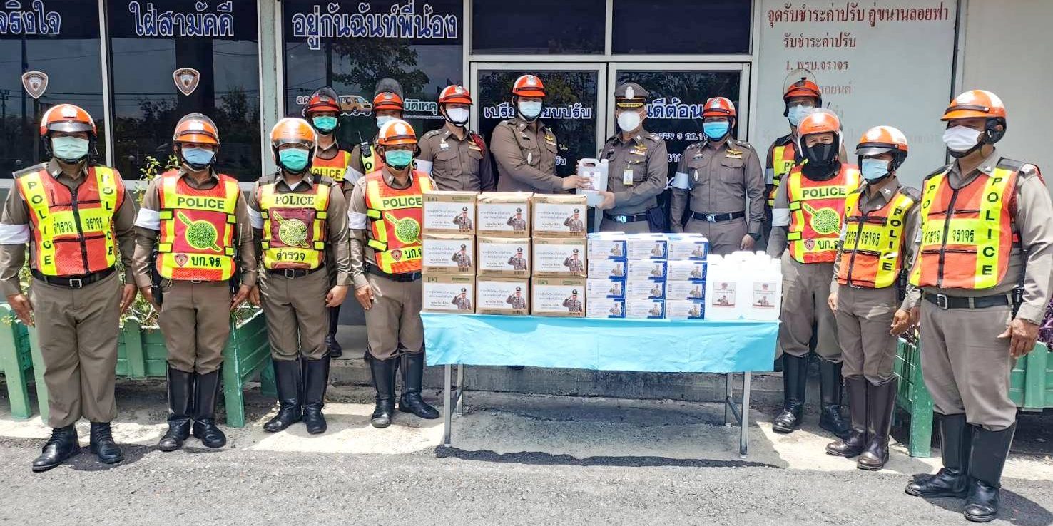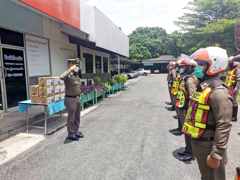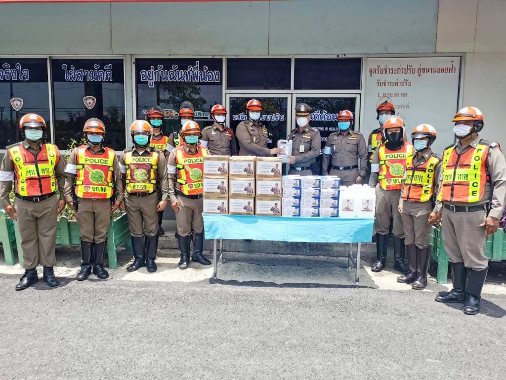 วันที่ 20 เม.ย.64 เวลา 12.00 น.ณ สน.คู่ขนานลอยฟ้า บรมราชชนนี : พล.ต.ต.ปิยะ ต๊ะวิชัย รอง ผบช.น./โฆษก บช.น. เดินทางมามอบหน้ากากอนามัย จำนวน 2,000 ชิ้น,เจลแอลกฮอล์ ขนาด 500 ml จำนวน 120 ขวด และ แอลกอฮอล์ถัง 5 ลิตร จำนวน 6 ถัง ให้แก่ ข้าราชการตำรวจ สน.คู่ขนานลอยฟ้า บรมราชชนนี ณ งานสายตรวจ 3 กองกำกับการ 1 กองบังคับการตำรวจจราจร (สน.คู่ขนานลอยฟ้า บรมราชชนนี)