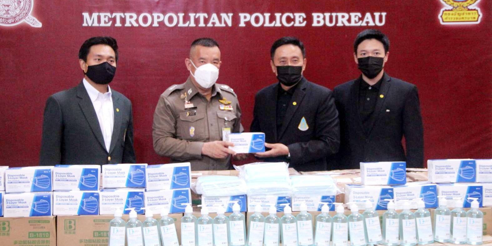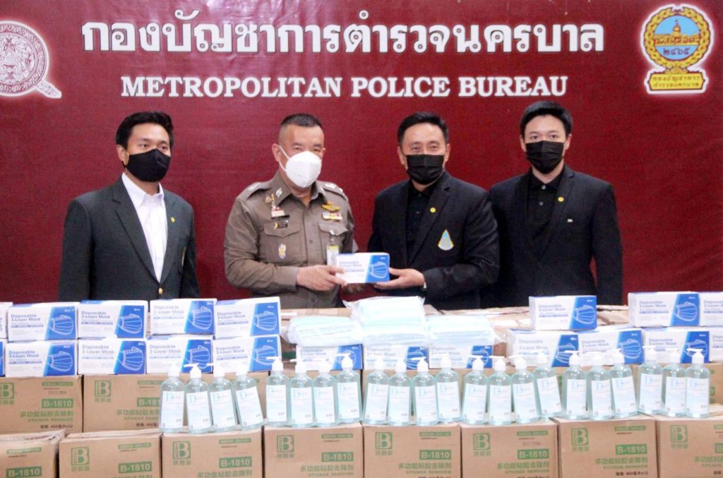 วันที่ 19 เม.ย. 64 เวลา 14.15 น. : พล.ต.ต.ปิยะ ต๊ะวิชัย รอง ผบช.น./โฆษก บช.น. รับมอบหน้ากากอนามัย จำนวน 50,000 ชิ้น และเจลแอลกฮอล์ขนาด 500 ML จำนวน 720 ขวด จากคุณนพเมศฐ์ เจริญนพพงศ์ ประธานกรรมการบริหารฯ,คุณภวินท์ ทรัพย์อัคร กรรมการบริหารฯ และ คุณนิธิธร ทรัพย์อัคร กรรมการบริหารฯ จากผู้แทน บริษัท เอ.เอ.อี.กรุ๊ป-88 จำกัด,บริษัท เอ เอ อี แอนด์ อาร์คิเทค-88 จำกัด และ บริษัท เอ เอ อี คอนสตรัคชั่น-88 จำกัด ณ ลานเอนกประสงค์ ชั้น 1 บช.น.