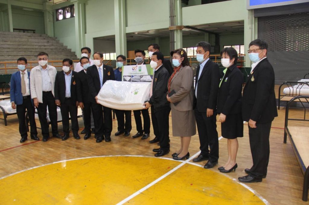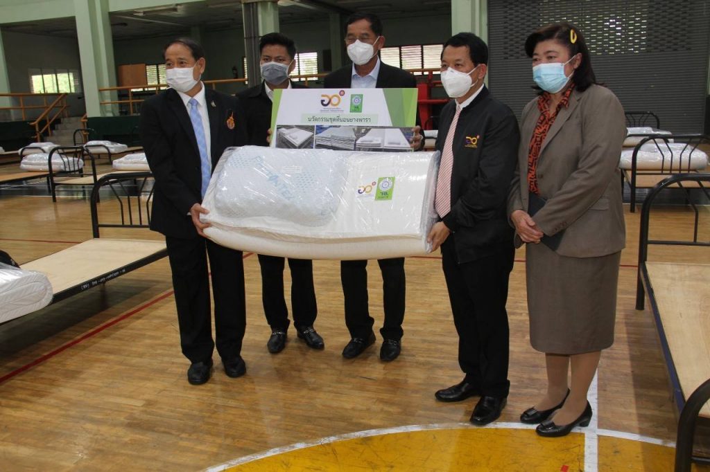 ด้าน ผู้ช่วยศาสตราจารย์ ดร.สมหมาย ผิวสะอาด อธิการบดีมหาวิทยาลัยเทคโนโลยีราชมงคลธัญบุรี กล่าวว่า วันนี้ได้รับมอบนวัตกรรมที่นอนยางพารา จาก (วช.) มาใช้ในโรงพยาบาลสนามมหาวิทยาลัยเทคโนโลยีราชมงคลธัญบุรี เบื้องต้นโรงพยาบาลสนามมหาวิทยาลัยเทคโนโลยีราชมงคลธัญบุรี สามารถรองรับผู้ป่วยที่ติดโควิด-19 ได้จำนวน 120 เตียง ซึ่งการดำเนินงานของโรงพยาบาลสนามแห่งนี้ ได้ดำเนินงานร่วมกับสาธารณสุขจังหวัดปทุมธานี มีบุคลากรทางการแพทย์และสาธารณสุขคอยควบคุมดูแลอย่างใกล้ชิด และในอนาคตมหาวิทยาลัยเทคโนโลยีราชมงคลธัญบุรี จะเปิดโรงพยาบาลสนามเพิ่มอีก 100 เตียง ที่มหาวิทยาลัยเทคโนโลยีราชมงคลธัญบุรี ศูนย์ปราจีนบุรี อีกด้วย