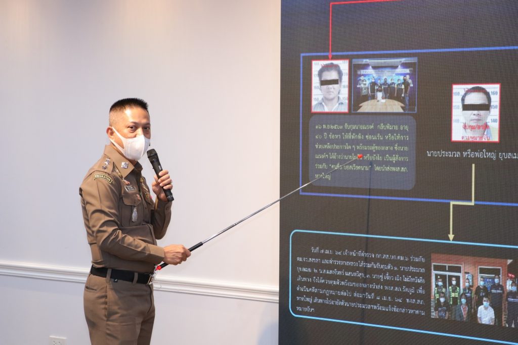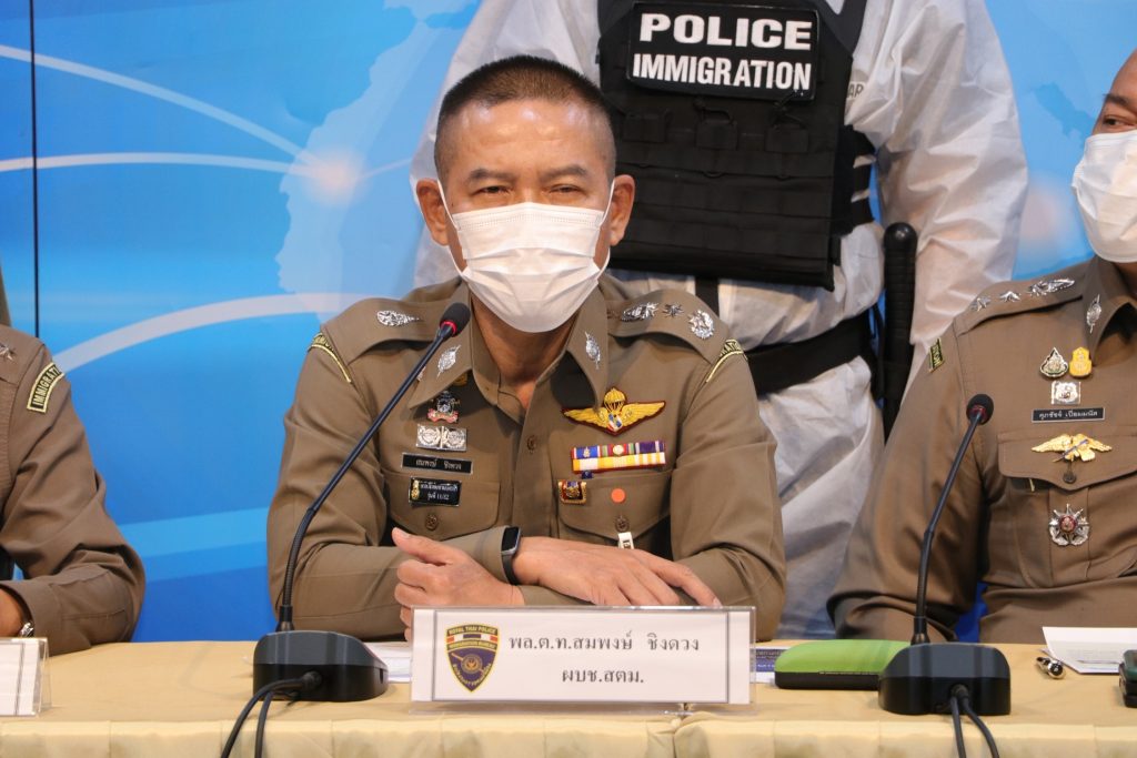 วันที่ 23 เม.ย.64 เวลา 10.30 น.ณ ห้องอเนกประสงค์ ชั้น 1 อาคาร 1 สตม.(สวนพลู) แขวงทุ่งมหาเมฆ เขตสาทร กรุงเทพมหานคร : พล.ต.ท.สมพงษ์ ชิงดวง ผบช.สตม.พร้อมด้วย พล.ต.ต.สุเมธ เมฆขจร ผบก.ตม.6,พ.ต.อ.ศุภชัชจ์ เปี่ยมมนัส,พ.ต.อ.ภาณุภาคยณ์ จิตต์ประยูรตี รอง ผบก.ตม.6 และ พ.ต.อ.ภคยศ ทนงศักดิ์ ผกก.สส.บก.ตม.6 ร่วมแถลงข่าวผลหารจับกุมคดีคนต่างชาติกระทำความผิดรายสำคัญ และคดีที่น่าสนใจ ดังนี้ สืบสวน ตม.6 ร่วม ตม.สงขลา ทลายเครือข่ายลักลอบ ช่วยเหลือคนต่างด้าวหลบหนีเข้าเมือง รายสำคัญ