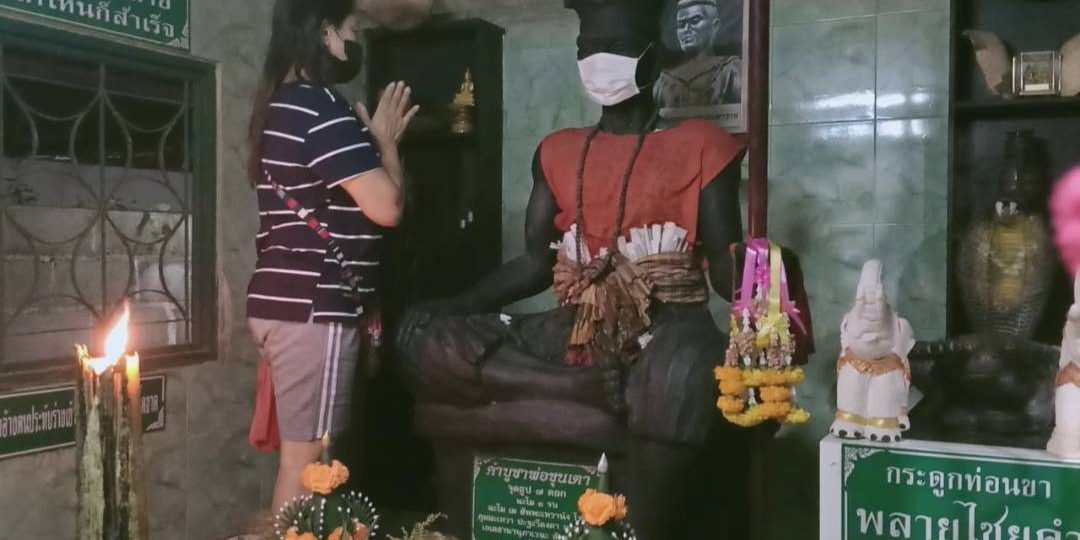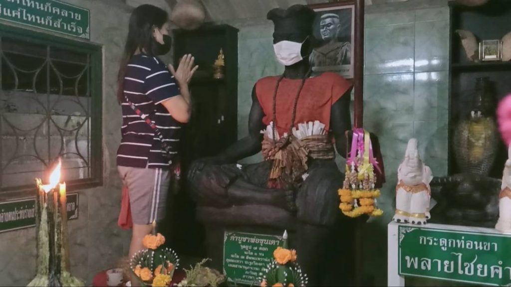 นางสุริมาศ ใบทอง และนางนันทภัส ตกต้น ชาวบ้านหนองหัวลิงบอกว่ามากราบไหว้เพื่อความเป็นศิริมงคลและขอให้มีโชคลาภในการเสี่ยงโชคและก็ได้สมความปรารถนาทุกครั้ง งวดที่แล้วได้เลข 78 กับ 87 ไปซื้อหวยแล้วถูกงวดนี้จุดธูปได้