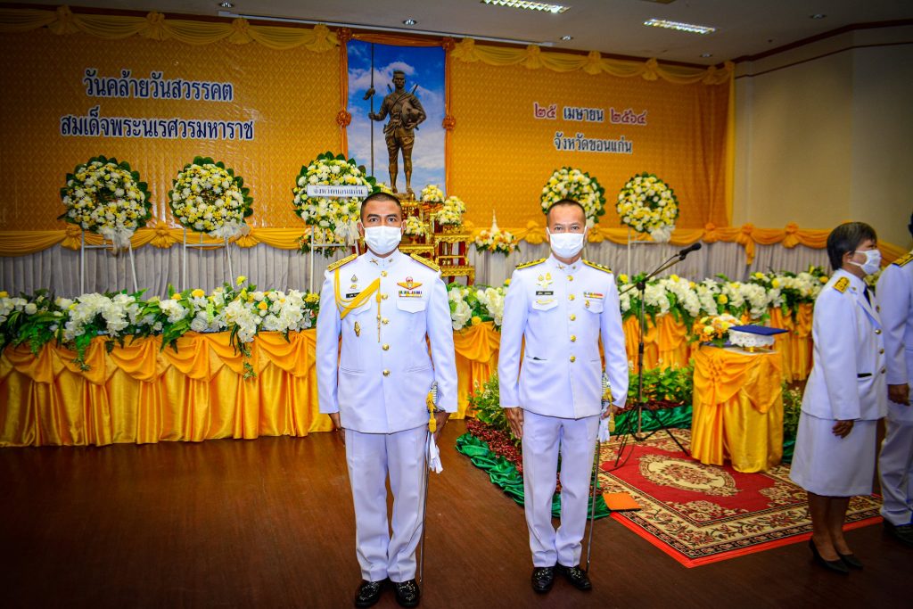 ที่ห้องประชุมแก่นเมือง ศาลากลางจังหวัดขอนแก่น ผู้สื่อข่าวรายงานว่า วันที่ 25 เมษายน 2564 เวลา 0830 พันเอก อุทัย นิลเนตร เสนาธิการกรมทหารราบที่ 8 (เสธ.ร.8) เป็นผู้แทน พันเอก ณรงค์ วิชญาณวรวุฒิ ผู้บังคับการกรมทหารราบที่ 8 (ผบ.ร.8) ร่วมงานวันรัฐพิธี วันคล้ายวันสวรรคตสมเด็จ พระนเรศวรมหาราช ประจำปี 2564 เพื่อเป็นการแสดงออกถึงความจงรักภักดีและน้อมรำลึกถึง พระมหากรุณาธิคุณของสมเด็จพระนเรศวรมหาราช ณ ห้องประชุมแก่นเมือง ศาลากลางจังหวัดขอนแก่น โดยมี นายสมศักดิ์ จังตระกุล ผู้ว่าราชการจังหวัดขอนแก่น เป็นประธานในพิธี และมีข้าราชการในพื้นที่จังหวัดขอนแก่น เข้าร่วมในพิธี ภายใต้มาตรการป้องกันการแพร่ระบาดของโรคติดเชื้อไวรัสโคโรนา 2019 (COVID-19) อย่างเคร่งครัด
