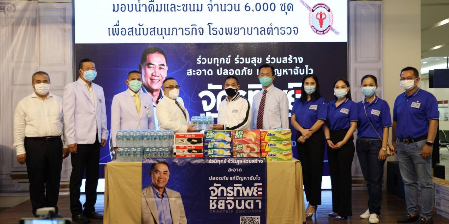 วันที่ 26 เมษายน 2564 เวลา 13.00 น. : พล.ต.อ.จักรทิพย์ ชัยจินดา อดีต ผบ.ตร. พร้อมคณะ เดินทางมายัง อาคารมหาภูมิพลราชานุสรณ์ โรงพยาบาลตำรวจ เพื่อมอบน้ำดื่ม-ขนม จำนวน 6,000 ชุด ให้กับ พล.ต.ท.โสภณรัชต์ สิงหจารุ นายแพทย์ใหญ่ โรงพยาบาลตำรวจ เพื่อมอบต่อบุคลากรทางการแพทย์-พยาบาล ที่ปฏิบัติหน้าที่ภายในโรงพยาบาลตำรวจ เพื่อเป็นขวัญกำลังใจในการปฏิบัติหน้าที่ต่อไป
