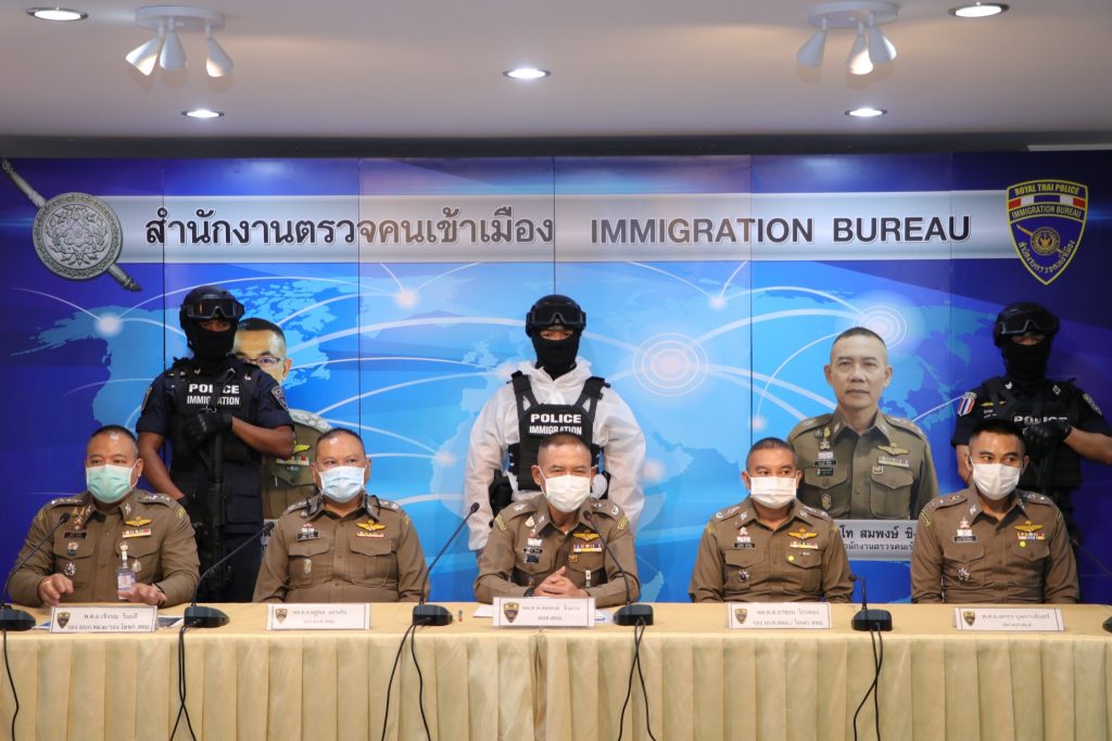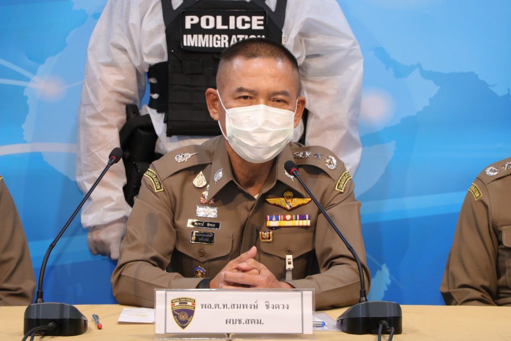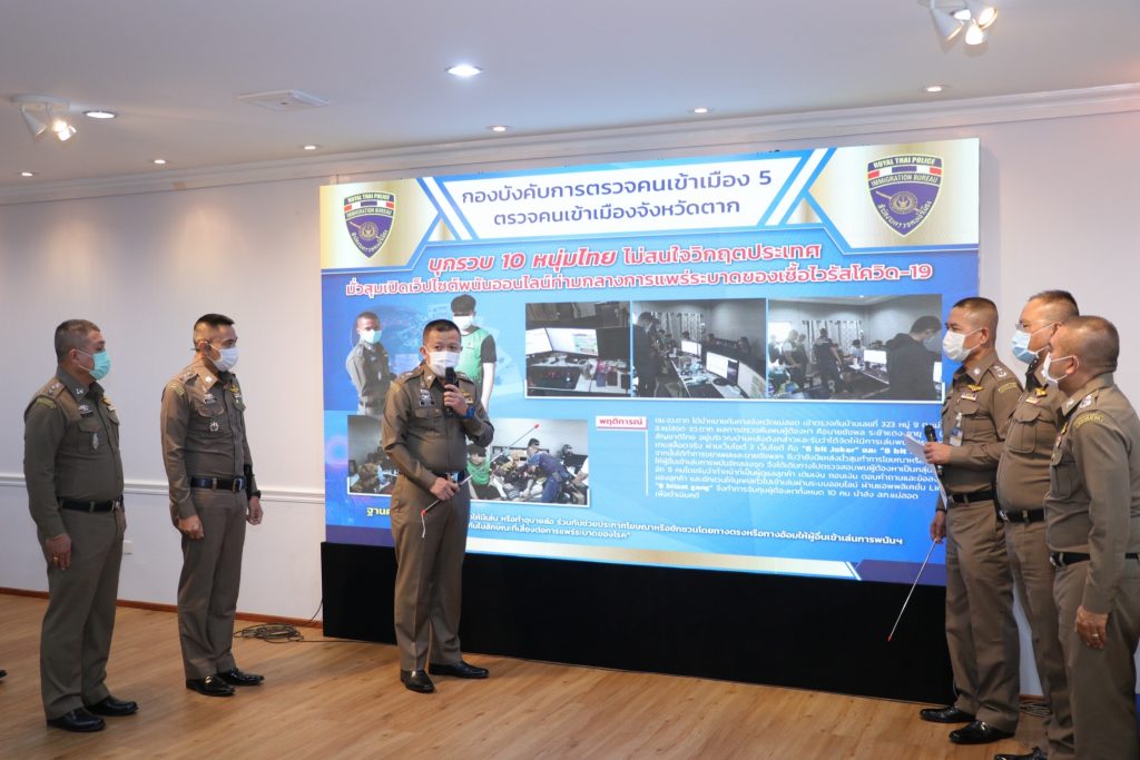 วันที่ 26 เม.ย.64 เวลา 13.30 น.ณ ห้องอเนกประสงค์ ชั้น 1 อาคาร 1 สตม.(สวนพลู) แขวงทุ่งมหาเมฆ เขตสาทร กทม. : พล.ต.ท.สมพงษ์ ชิงดวง ผบช.สตม.พร้อมด้วย พล.ต.ต.ณฐพล แสวงกิจ,พล.ต.ต.อาชยน ไกรทอง รอง ผบช.สตม.,พล.ต.ต.เดชา กัลยาวุฒิพงศ์ ผบก.ตม 5,พ.ต.อ.เอกกร บุษบาบดินทร์ รอง ผบก.ตม.5,พ.ต.อ.เศรษฐภัทร ณ สงขลา ผกก.สส.บก.ตม.5,พ.ต.อ.สัมพันธ์ เหลืองสัจจกุล ผกก.ตม.จ.ตาก และ พ.ต.ท.สุชาติ เพ็ญภู่ รอง ผกก.ตม.จ.ตาก