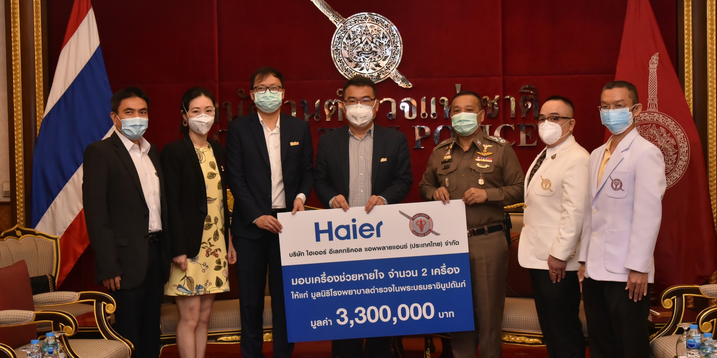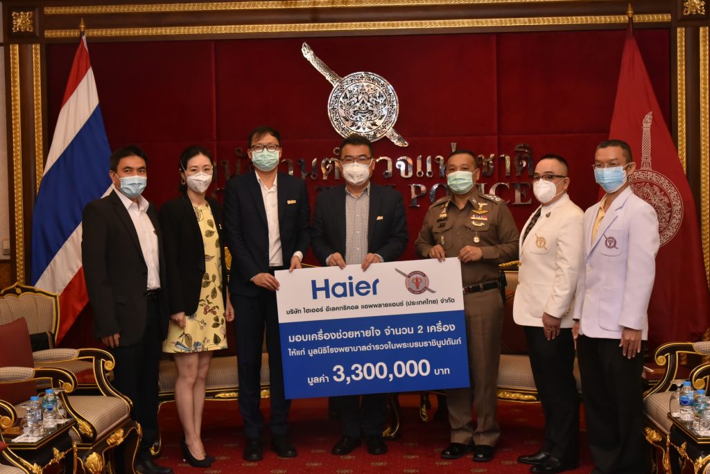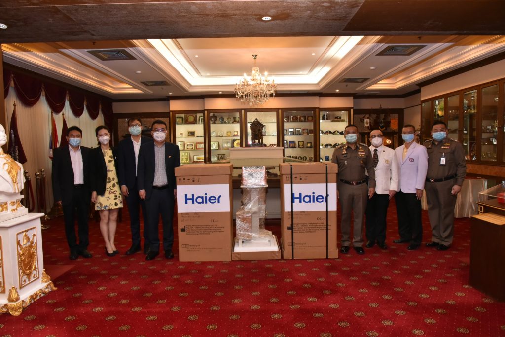 Mr.Zhang Zhenghui ประธานบริษัท Haier Thailand,Mr.Ding Guijian,Mr.Sun Guanglei,Ms. Most,นายจอมพงษ์ โตมงคละ,คุณฐิตานันท์ ซุน พร้อมคณะฯ เพื่อใช้สำหรับภารกิจในการดูแลรักษาพี่น้องประชาชนของโรงพยาบาลตำรวจ