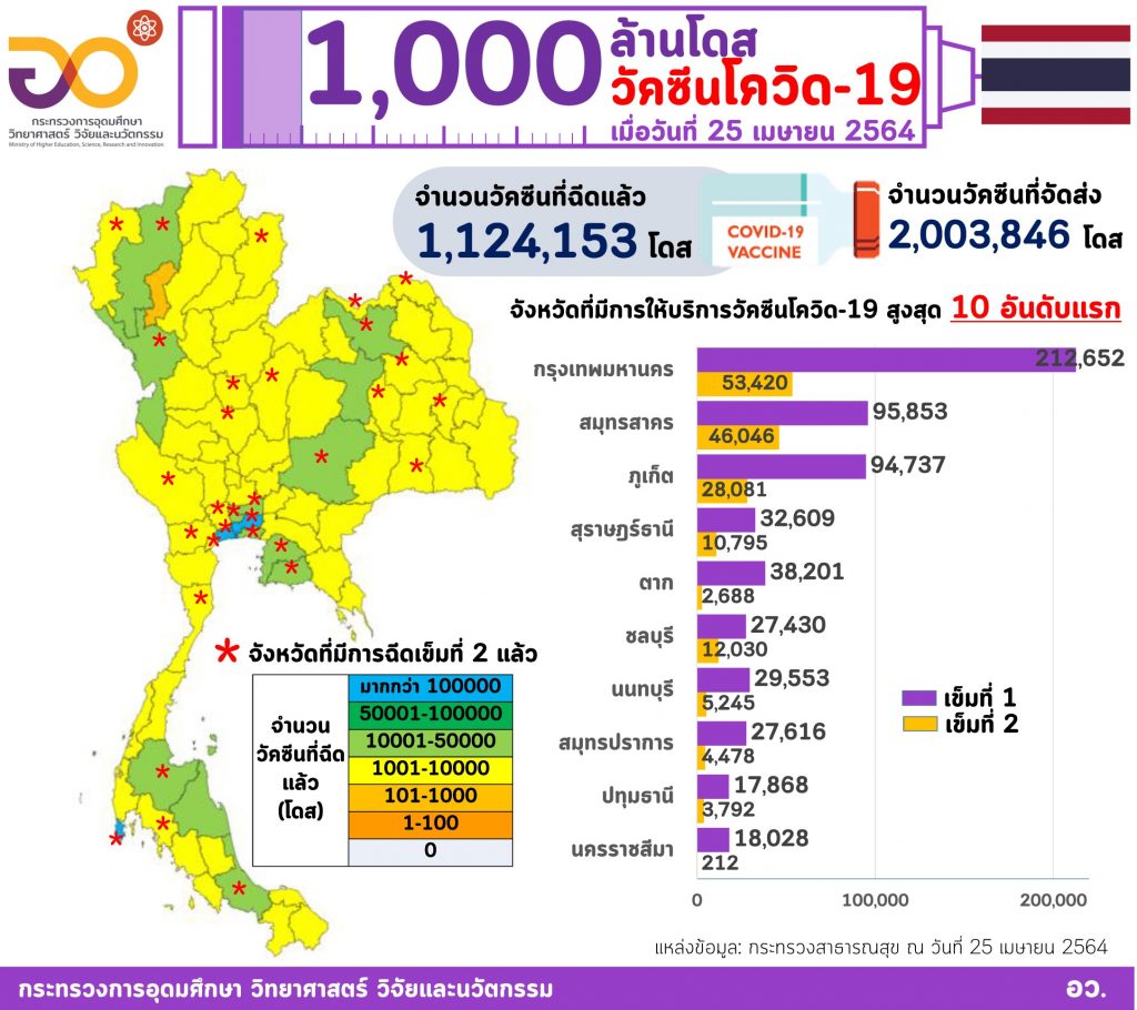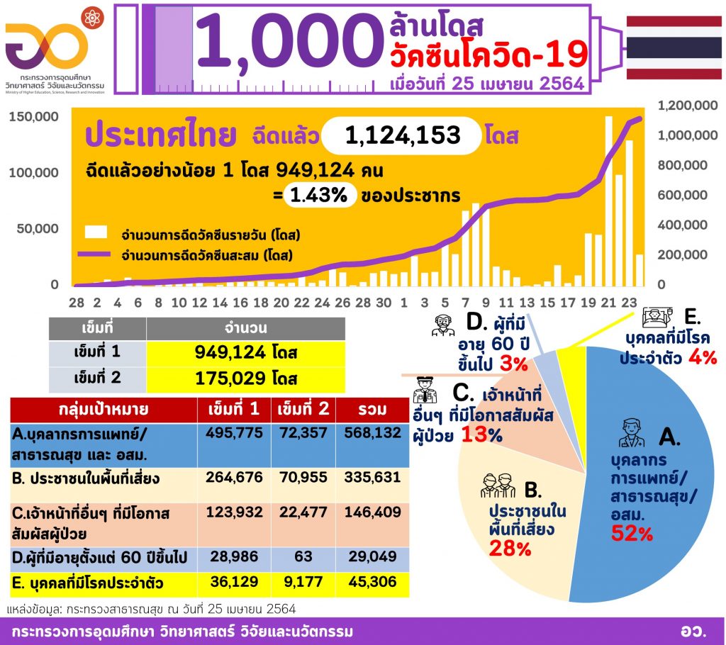 ในการฉีดวัคซีนโควิด-19 จำนวน 1,000 ล้านโดสนี้ (อว.) ขอรายงานสถิติที่สำคัญ คือ