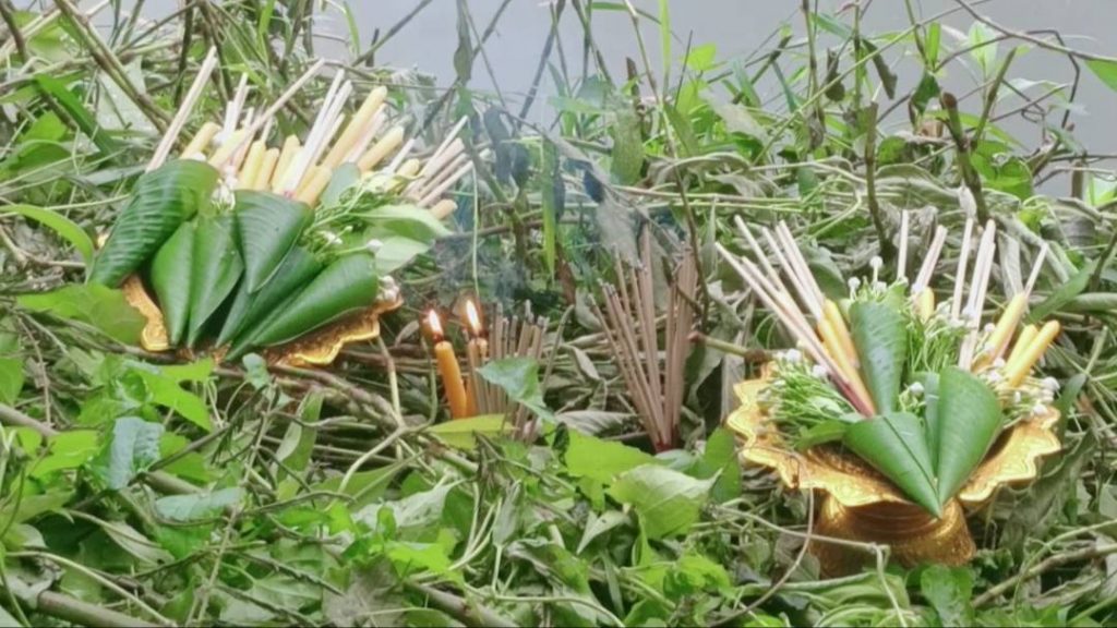 วันที่ 27 เมย.64 ชาวบ้านชะอมต.ตะพานหินอ.นาดี จ.ปราจีนบุรี พบเรือตะเคียนโบราณจมอยู่ในน้ำในหนุมานหลังวัดชะอม ร่วมทำขันธ์ 5 ดอกไม้ธูปเทียนเพื่อทำพิธีขอขมาเพื่อที่จะนำเรือตะเคียนโบราณมาไว้ที่วัดชะอม จุดที่พบเรือตะเคียนจมอยู่ในน้ำในแควหนุมานไปทางด้านทิศตะวันออกห่างจากวัดประมาณ 500 เมตร โดยมีพระจากวัดชะอมร่วมกับชาวบ้านมุดน้ำโกยทรายออกจากในเรือซึ่งจมอยู่ใต้น้ำลึก 1.50 ม.โดยใช้เครื่องสูบน้ำต่อสายยางดันลงไปใต้น้ำเพื่อเป่าทรายที่อยู่ในลำเรือที่จมน้ำอยู่ครึ่งลำ ก่อนหน้านี้มีคนหาปลาหากุ้งมามุดน้ำหาปลาหากุ้งที่บริเวณดังกล่าวและได้พบเห็นเรือตะเคียนโบราณจมอยู่ใต้น้ำจึงมาบอกคนในหมู่บ้านและพระทราบ คนเฒ่าคนแก่ในหมู่บ้านหารือกันกับผู้นำหมู่บ้านสมควรนำเรือที่จมอยู่ในน้ำมาไว้ที่วัดเพื่อความเป็นสิริมงคล วันนี้จึงทำพิธีธรรมขันธ์ 5 เพื่อไปขอขมารอเจ้าแม่ตะเคียนที่มีความเชื่อกันว่าสิงสถิตอยู่ในเรือตะเคียนก่อนที่จะนำขึ้นจากน้ำมาไว้ที่วัด โดยมีการวางแผนกันไว้ว่าหากนำเรือขึ้นจากน้ำได้แล้วก็จะเอาใส่แพล่องน้ำมาไว้ที่วัดพระและญาติโยมช่วยกันมุดน้ำขนทรายออกจากลำเรือ ราว 2 ชั่วโมงยังไม่สามารถนำเรือขึ้นจากน้ำได้ แต่ก็ยังไม่ลดความพยายามและจะใช้ความพยายามในการที่จะนำเรือขึ้นมาจากน้ำให้ได้แม้จะใช้เวลานานก็จะเอาเรือขึ้นจากน้ำมาไว้ที่วัดให้ได้