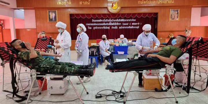 พลตรี ทวนชัย นัดนะรา ผู้บัญชาการศูนย์การทหารปืนใหญ่ นำกำลังพล จากหน่วยขึ้นตรงในพื้นที่ ค่ายภูมิพล ฯ ที่มีสุขภาพแข็งแรง ไม่เข้าข่ายที่เป็นผู้มีความเสี่ยงติดเชื้อไวรัส “COVID-19” ประกอบด้วย กองพันทหารปืนใหญ่ ศูนย์การทหารปืนใหญ่ จำนวน 25 นาย , กองพันบริการ ศูนย์การทหารปืนใหญ่ จำนวน 50 นาย , โรงเรียนทหารปืนใหญ่ ศูนย์การทหารปืนใหญ่ จำนวน 25 นาย รวม 100 นาย เข้าร่วมบริจาคโลหิต ตามโครงการ “ ทบ.บริจาคโลหิต เพื่อชาติ ” ซึ่งอยู่ในภาวะขาดแคลนโลหิตสำรองไม่เพียงพอต่อการนำที่ใช่ในการช่วยเหลือรักษาผู้ป่วย ในห้วงสถานการณ์การระบาด Covid – 19 ระลอกใหม่ เมษายน 2564 ณ สโมสรนายทหารปืนใหญ่ ค่ายภูมิพล ต.เขาพระงาม อ.เมือง จ.ลพบุรี