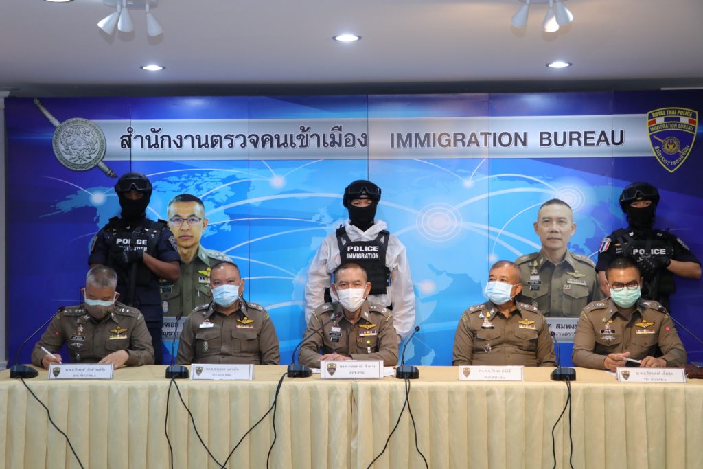 วันที่ 30 เม.ย.64 เวลา 10.30 น.ณ ห้องอเนกประสงค์ ชั้น 1 อาคาร 1 สตม. ซอยสวนพลู แขวงทุ่งมหาเมฆ เขตสาทร กรุงเทพมหานคร : พล.ต.ท.สมพงษ์ ชิงดวง ผบช.สตม. พร้อมด้วยพล.ต.ต.ณฐพล แสวงกิจ รอง ผบช.สตม.,พล.ต.ต.รุ่งโรจน์ ฐากูรปุณยสิริ ผบก.ตม.3,พ.ต.อ.ทรงโปรด สิริสุขะ,พ.ต.อ.กฤตัชญ์ บำรุงรัตนยศ,พ.ต.อ.รัชธพงศ์ เตี้ยสุด,พ.ต.อ.หฤษฎ์ เอกอุรุ รอง ผบก.ตม.3 และ ว่าที่ พ.ต.อ.จิรพงศ์ รุจิรดำรงค์ชัย ผกก.สส.บก.ตม.3 ร่วมแถลงข่าวผลการจับกุม โดยมีรายละเอียดดังนี้