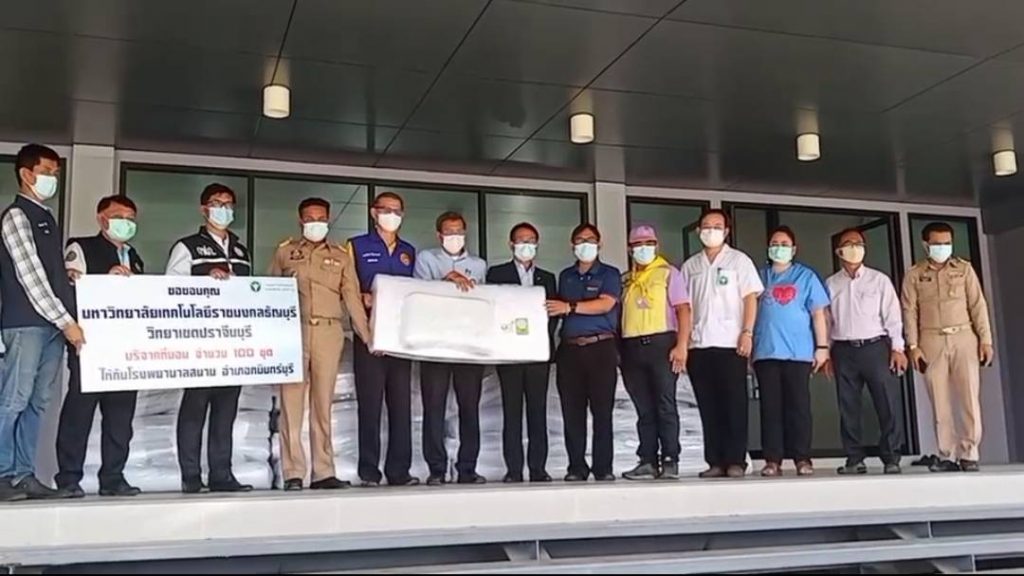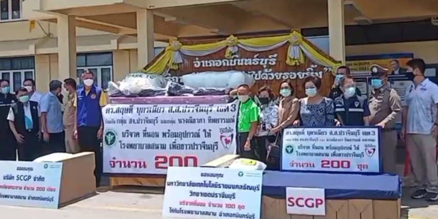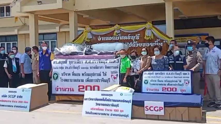 (ดร.) สฤษดิ์ บุตรเนียร สส.พรรคภูมิใจไทย เขต.3 กลุ่ม สจ.ร่วมกับคณะร่วมบริจาคที่นอนพร้อมอุปกรณ์ ให้รพ.สนามสำหรับผู้ที่ติดเชื้อโควิด-19 ที่มีจำนวนผู้ติดเชื้อโควิคเพิ่มขึ้นทุกวันจำนวน200ชุด และมีบริษัทห้างร้านต่างๆสมทบทุนเปิดโรงพยาบาลสนามรองรับผู้ที่ติดเชื้อโควิ-19 ที่มีจำนวนเพิ่มมากขึ้นเป็นจำนวนมาก รพ.ในพื้นที่ไม่มีที่เพียงพอรองรับผู้ติดเชื้อโควิด-19 จังหวัดปราจีนบุรี ได้ตั้งรพ.สนามที่ มหาวิทยาลัยเทคโนโลยีราชมงคลธัญบุรี วิทยาเขตปราจีนบุรี