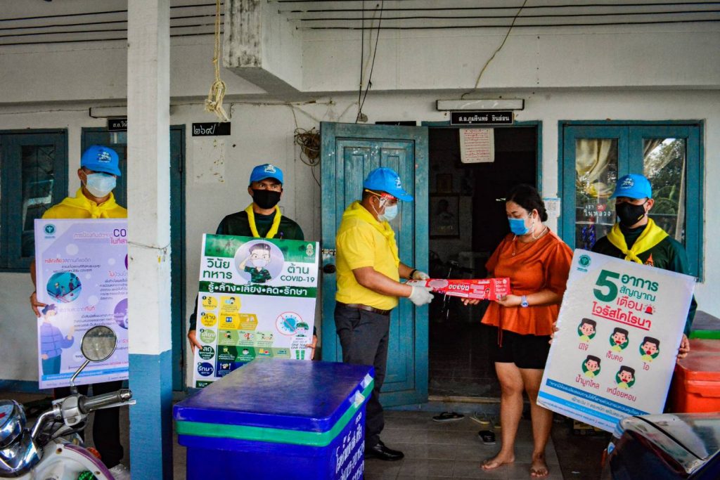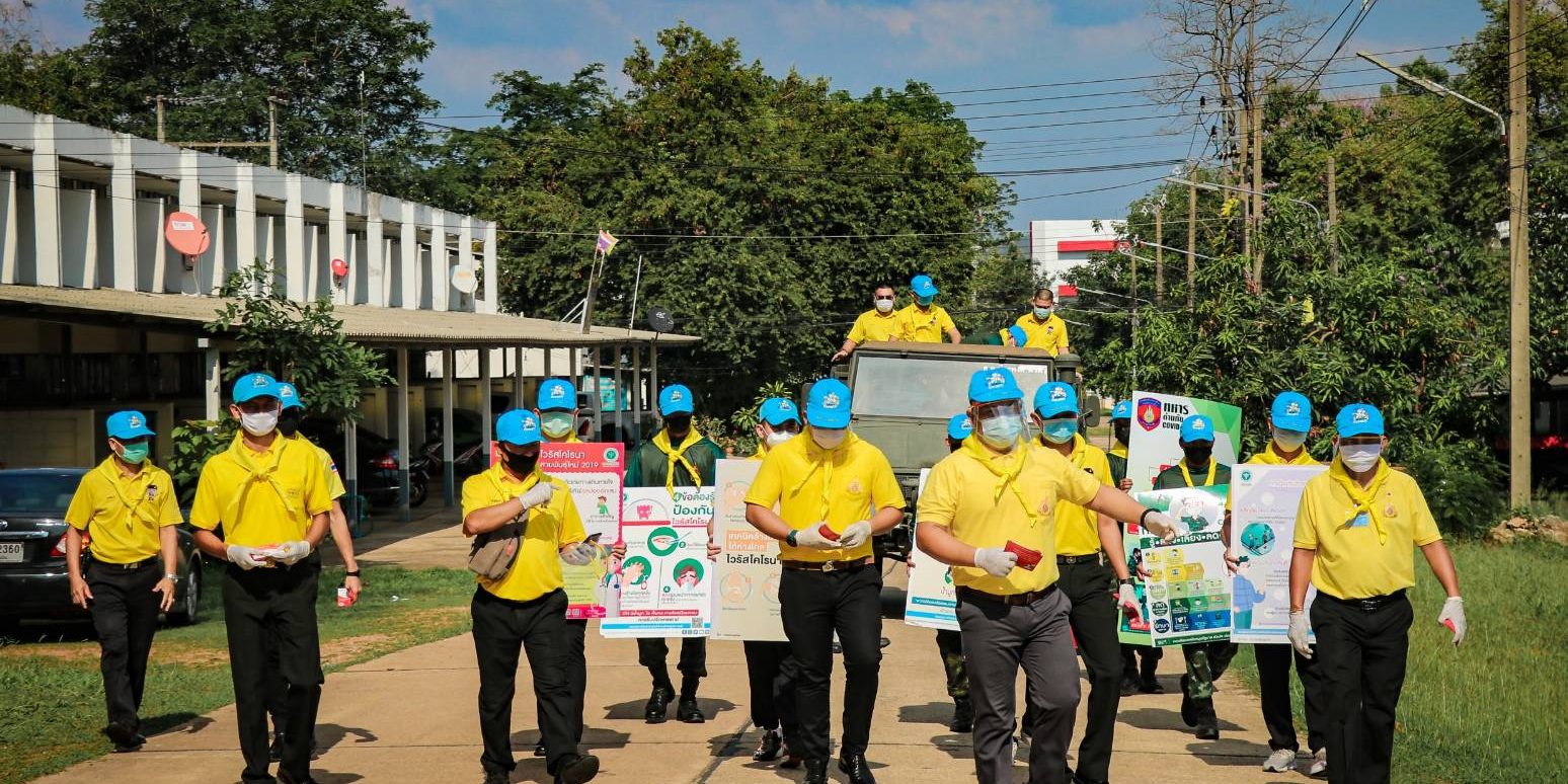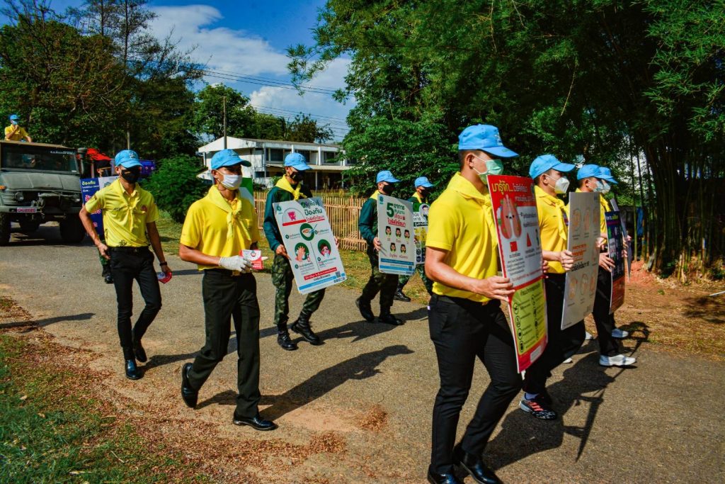 __ที่ค่ายสีหราชเดโชไชย อ.เมือง จ.ขอนแก่น ผู้สื่อข่าวรายงานว่า กรมทหารราบที่ 8 นำกำลังพลจิตอาสาของหน่วยเดินรณรงค์ประชาสัมพันธ์เชิญชวนให้กำลังพล และครอบครัวปฏิบัติตามมาตรการป้องกันการแพร่ระบาดของโรคโควิด – 19 เพื่อสร้างการรับรู้ และทำความเข้าใจเกี่ยวกับมาตรการการป้องกันโรคโควิด -19 โดยได้แจกเอกสารประชาสัมพันธ์ และให้คำแนะนำการป้องกันโรคโควิด -19 พร้อมทั้งเน้นย้ำให้กำลังพล และครอบครัวปฏิบัติตามนโยบายรัฐบาลอย่างเคร่งครัด มิให้มีการแพร่กระของเชื้อโรค เพื่อให้กำลังพล และครอบครัวได้ตระหนักรู้เท่าทันต่อสถานการณ์ และการป้องกันตนเอง ป้องกันบุคคลรอบข้างหรือบุคคลใกล้ชิดให้มีความปลอดภัย ณ ห้องแถวบ้านพักค่ายสีหราชเดโชไชย ต.ศิลา อ.เมือง จ.ขอนแก่น