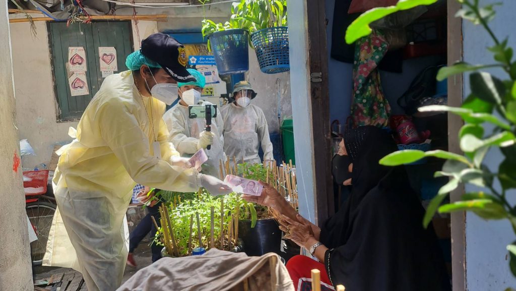 และในส่วนของมูลนิธิร่วมกตัญญู โดยท่านประธาน ดร.รัตนา สมสกุลรุ่งเรือง ได้จัด หน้ากากอนามัย บรรจุใส่ถุง จำนวน ถุงละ 10 แผ่น โดย พี่ไทด์- เอกพัน บรรลือฤทธิ์ เป็นผู้ยื่นให้แต่ละครอบคร้ว และ พี่ท็อป-บิณฑ์ บรรลือฤทธิ์ มอบเงินช่วยเหลือ ครอบครัวละ 500 บาท (เป็นเงินส่วนตัวรายได้จากการเป็น พรีเซ้นเตอร์ เครื่องดื่มคอมมานโด ปีนี้ มอบให้ก่อน 1 ล้านบาท)