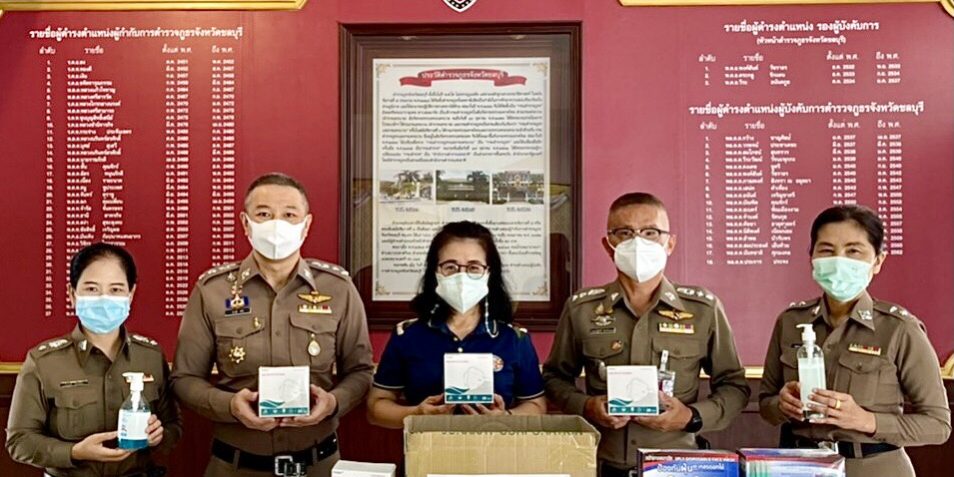 วันที่ 3 พฤษภาคม 2564 ที่กองบังคับการตำรวจภูธรจังหวัดชลบุรี : พ.ต.อ.ธนาวุฒิ จงจิระ รองผบก.ภ.จ.ชลบุรี พร้อมด้วย พ.ต.อ.ประเสริฐศักดิ์ จันทร์ประเทศ ผกก.ฝอ.ภ.จ.ชลบุรี และข้าราชการตำรวจ รับมอบหน้ากากอนามัยจำนวน 1,000 ชิ้น และเจลแอลกอฮอล์ จำนวนหนึ่ง จากพระอาจารย์ชายกลาง อภิญาโณ ประธานกรรมการมูลนิธิสหชาติ ซึ่งมอบหมายให้ นางสุกัญญา จรรยา ผู้จัดการมูลนิธิฯ ทำหน้าที่เป็นผู้ส่งมอบ