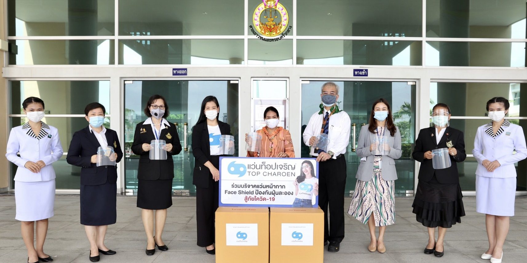 แว่นท็อปเจริญ นำทีมส่งมอบแว่นหน้ากากเฟสชิลด์เพิ่มเติมอีกจำนวน 200 ชุด รวมทั้งสิ้น 400 ชุด แด่ศาลเยาวชนและครอบครัวกลาง โดยมี นางอุไรรัตน์ น้อยสุวรรณ รองอธิบดีผู้พิพากษาศาลเยาวชนและครอบครัวกลาง (กลาง) พร้อมด้วยนายภัทรศักดิ์ ศิริสินธว์ รองอธิบดีฯ,นางสาวอัมภัสชา ดิษฐอำนาจ เลขานุการศาลฯ และดร.ปัณฑิพาณ์ ธาราภิบาล ผู้พิพากษาสมทบ ร่วมให้เกียรติรับมอบ เพื่อใช้เป็นอุปกรณ์เสริมในการรับมือกับสถานการณ์การแพร่ระบาดของเชื้อไวรัสระลอกใหม่ และยังช่วยป้องกันฝุ่นละอองบริเวณใบหน้าและดวงตา ให้แก่ผู้พิพากษา ผู้พิพากษาสมทบ ข้าราชการและเจ้าหน้าที่ของศาลเยาวชนและครอบครัวกลาง ในการพิจารณาคดีและปฏิบัติหน้าที่ดูแลช่วยเหลือเด็กและเยาวชนในสังคมไทย ณ ศาลเยาวชนและครอบครัวกลาง กรุงเทพมหานคร