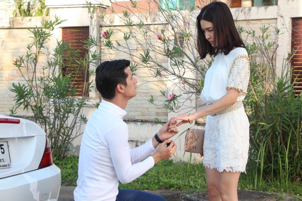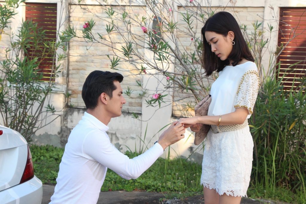 ฉากนี้ทีมงานใช้บ้านหลังหนึ่งในหมู่บ้านปัญญารามอินทรา เป็นสถานที่ถ่ายทำ เป็นบ้านพิม ในระหว่างที่เซ็ททั้งไฟตั้งกล้อง นักแสดงทั้งสองก็ซักซ้อมต่อบทกัน พอพร้อมก็เริ่มถ่าย แต่ก็ต้องเทคกัน เพราะตอนที่สวมแหวนให้สาวโม เผอิญผมตกลงมาปิดหน้าพอดี๊ เลยต้องถ่ายฉาก ชิน คุกเข่าสวมแหวนใหม่ ซึ่งทุกอย่างก็ผ่านไปโลด หลังผู้กำกับฯสั่งคัท สาวโมแอบหยอกหนุ่มชินว่า “เล่นได้น่าสงสารมากๆ เลย” ทำเอา หนุ่มชิน ถึงกับอมยิ้ม หลังจากนั้นก็มีการถ่ายเจาะเพื่อให้เห็นหน้าหนุ่มชินกับสาวโมแบบเต็มๆ เพื่อให้เห็นว่าตัวละครแต่ละตัวมีความรู้สึกเช่นไร รวมไปถึงมือที่กำลังสวมแหวน