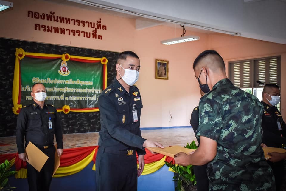 ที่ค่ายพระยอดเมืองขวาง ตำบลกุรุคุ อำเภอเมือง จังหวัดนครพนม ผู้สื่อข่าวรายงานว่า พันโท ศรณณัฐ นวลมณี ผู้บังคับกองพันทหารราบที่ 3 กรมทหารราบที่ 3 (ผบ.ร.3 พัน 3) เป็นประธานพิธีรับมอบใบประกาศเกียรติคุณให้กับทหารกองประจำการ ที่ปลดประจำการ ในวันที่ 1 พฤษภาคม 2564 เพื่อเป็นการแสดงออกถึงความรัก ความห่วงใย กับ น้องทหารกองประจำการ ตลอดระยะเวลาที่รับใช้ประเทศชาติจะครบปลดจากประจำการเป็นทหารกองหนุนโดยจัดพิธีอำลาชีวิตราชการทหารกองประจำการอย่างสมเกียรติ ที่ได้เสียสละในการปฏิบัติหน้าที่ด้วยดีตลอดมา พร้อมทั้งแนะนำให้นำอุดมการณ์ทหาร และการช่วยเหลือประชาชน นำไปเป็นแนวทางในการดำเนินชีวิตหลังปลดประจำการต่อไป โดยก่อนหน้านี้ หน่วย ร.3 พัน.3 ก่อนปลดประจำการ 1 เดือน ได้มีการจัดอบรมวิชาชีพทั้งภาคธุรกิจ อุตสาหกรรม และเกษตรกรรม เพื่อเป็นพื้นฐานในการดำเนินชีวิต ทั้งนี้ยังได้จัดเลี้ยงข้าวมื้อพิเศษ ให้กับทหารกองประจำการที่จะปลดประจำการของหน่วย เพื่อแทนคำขอบคุณ สำหรับน้องๆทหารที่เสียสละ เข้ามารับใช้ชาติ ตลอดระยะเวลาที่ผ่านมา โดยการดำเนินกิจกรรมอยู่ภายใต้มาตรการการควบคุมสถานการณ์ไวรัส โควิด -19 อย่างเคร่งครัด