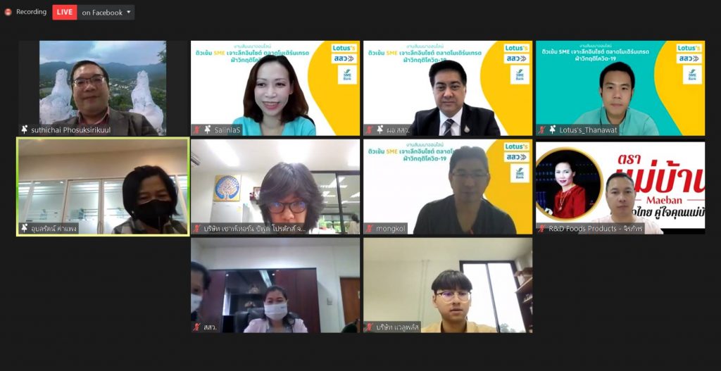 นางสาวสลิลลา สีหพันธุ์ ประธานเจ้าหน้าที่บริหารด้านบุคคลและความยั่งยืน โลตัส กล่าวว่า “โลตัส สนับสนุนผู้ประกอบการ SME มาอย่างต่อเนื่อง ผ่านการเป็นช่องทางจำหน่ายสินค้าและการยกระดับมาตรฐานการผลิตของสินค้าไทย สถานการณ์การแพร่ระบาดของโรคโควิด-19 สร้างความท้าทายให้กับธุรกิจแทบทุกขนาด โดยเฉพาะอย่างยิ่งธุรกิจ SME ที่ได้รับผลกระทบอย่างมาก จึงเป็นที่มาของการร่วมมือกับ SME D Bank และ (สสว.) ในการจัดกิจกรรมเจรจาธุรกิจ (Business Matching) ทุกเดือน เปิดโอกาสให้ผู้ประกอบการ SME ที่มีศักยภาพ ได้เจรจาทางการค้าโดยตรงกับทีมงานฝ่ายพาณิชย์ของโลตัส เพื่อคัดเลือกสินค้าในทุกหมวดหมู่ จำหน่ายในช่องทางของเรา ทั้งสาขาทั่วประเทศและช่องทางออนไลน์ โลตัส มีแผนงานที่ชัดเจนในการเพิ่มปริมาณการรับซื้อสินค้าเกษตรและสินค้า SME อย่างน้อย 10% ทุกปีเป็นระยะเวลา 5 ปี เพื่อสนับสนุนแผนงานนี้ เราได้ดำเนินการหลายด้าน รวมถึงการเปิดช่องทางบนเว็บไซต์ของเราให้ผู้ประกอบการ SME สามารถนำเสนอสินค้าได้สะดวกขึ้น การจัดกิจกรรมเจรจาธุรกิจ (Business Matching) ทุกเดือน ประเดิมครั้งแรกผ่านแพลทฟอร์มออนไลน์เนื่องจากสถานการณ์การแพร่ระบาดของโรคโควิด-19 นอกจากนั้น เรายังได้ปรับปรุงกระบวนการการจัดจำหน่ายสินค้า SME ให้กระชับและรวดเร็วขึ้นกว่าเดิม เพื่อให้ผู้ประกอบการ SME สามารถกระจายสินค้าผ่านโลตัสและมียอดขายเร็วขึ้นกว่าเดิม”