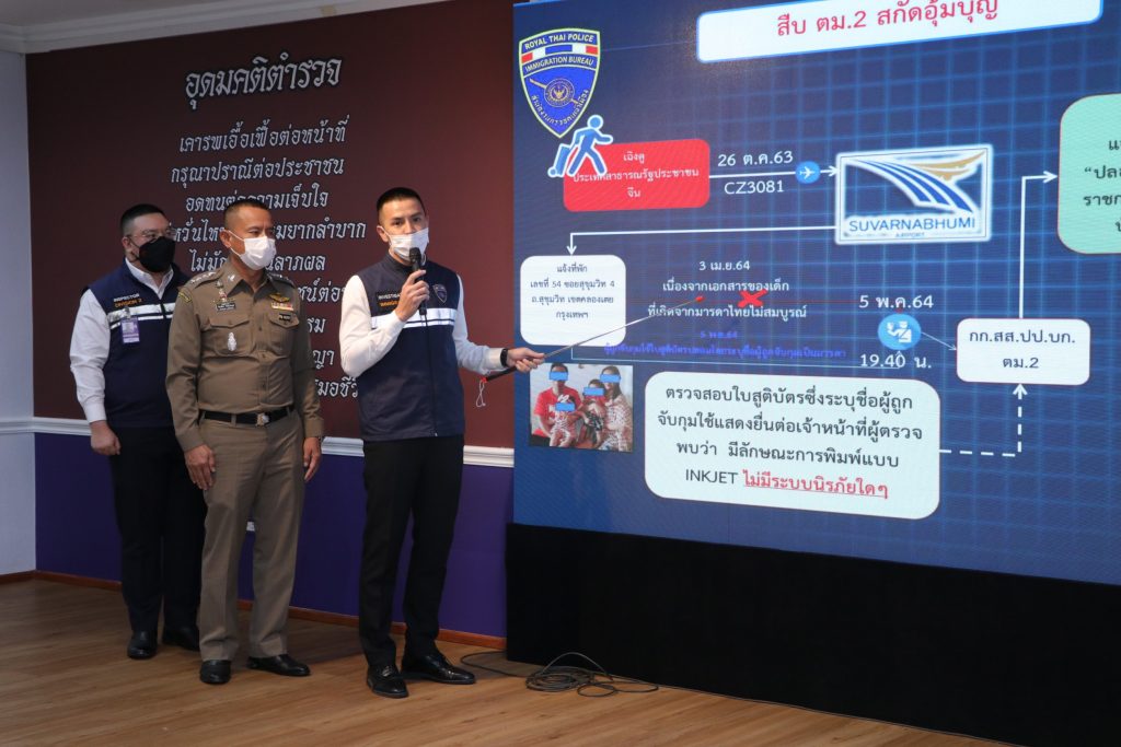 1.สืบสวน ตม.2 สกัดสาวจีนปลอมร่วมกับ ฝ่าย ตม.ขาออก ด่าน ตม.ท่าอากาศยานสุวรรณภูมิ : ตามนโยบายของผู้บังคับบัญชา ในระดับสำนักตำรวจแห่งชาติ และ สำนักงานตรวจคนเข้าเมือง ให้หน่วยงานในสังกัดบูรณาการปฏิบัติระหว่างกัน เพื่อประสิทธิภาพในการป้องกันปราบปรามขบวนการอุ้มบุญข้ามชาติไม่ให้ลักลอบกระทำความผิดในราชอาณาจักร นาง A สัญชาติจีน แสดงตนต่อเจ้าหน้าที่ ฝ่าย ตม.ขาออก ด่าน ตม.ท่าอากาศยานสุวรรณภูมิ พร้อมด้วย ด.ช.C อายุประมาณ 11 เดือน เกิดเมื่อวันที่ 22 พ.ค.63 ในประเทศไทย เพื่อขอรับการตรวจออกนอกราชอาณาจักร ไปยังเมืองเฉิงตู ประเทศจีน โดยสายการบินเสฉวนแอร์ไลน์ เที่ยวบินที่ 3U8146 โดยแสดงสูติบัตรที่ระบุว่า นาง A เป็นมารดา โดยมี นาย B สัญชาติจีน เป็นบิดา แต่เมื่อเจ้าหน้าที่ ฝ่าย ตม.ขาออกฯ พิจารณาประวัติการเดินทางเข้าราชอาณาจักรของ นาง A ปรากฎว่าในห้วงวันที่ 22 พ.ค.63 ซึ่งเป็นวันที่ ด.ช.C เกิด นาง A มิได้อยู่ในราชอาณาจักร เมื่อเจ้าหน้าที่ กก.สส.ปป.บก.ตม.2 ตรวจสอบใบสูติบัตร พบความผิดปกติ เอกสารดังกล่าวมิได้ทำด้วยกระดาษนิรภัย ลักษณะการพิมพ์เอกสารด้วยหมึกอิงค์เจ็ท ต่างจากการสูติบัตรทั่วไป จึงจับกุม นาง A ข้อหา “ปลอมและใช้เอกสารราชการปลอม” และนำส่ง พงส.สภ.ท่าอากาศยานสุวรรณภูมิ เพื่อดำเนินคดีต่อไป
