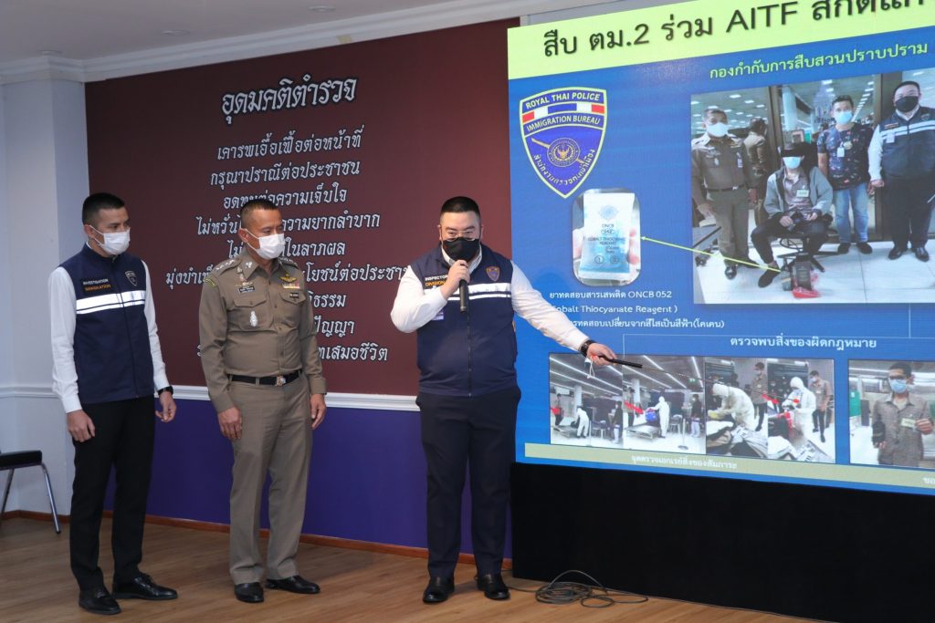 2.สืบสวน ตม.2 ร่วมกับ กสป.ศุลกากร สุวรรณภูมิ จับชาวบราซิล ขนโคคาอีนผสมสุรา 1,880 กรัม : ตามนโยบายของผู้บังคับบัญชาในระดับสำนักตำรวจแห่งชาติ และ สำนักงานตรวจคนเข้าเมือง ให้หน่วยงานในสังกัดบูรณาการปฏิบัติระหว่างกัน เพื่อประสิทธิภาพในการป้องกันปราบปรามการกระทำความผิดต่างๆ รวมถึงกลุ่มบุคคล หรือขบวนการอาชญากรรมข้ามชาติต่างๆ ที่จะเข้ามาดำเนินการสร้างความเสียหายต่อภาพลักษณ์และเศรษฐกิจของประเทศได้ ทั้งนี้ ผลมาจากการบูรณาการปฏิบัติด้านการข่าวระหว่าง กองกำกับการสืบสวนปราบปราม กองบังคับการตรวจคนเข้าเมือง 2 สำนักงานตรวจคนเข้าเมือง และ กสป.ศุลกากร สุวรรณภูมิ และหน่วยงานความมั่นคงต่างๆ ประจำท่าอากาศยานสุวรรณภูมิ ภายใต้การปฏิบัติการ AITF ในการลักลอบนำเข้าหรือส่งออกยาเสพติดให้โทษ และจากการเฝ้าระวังอย่างต่อเนื่องได้ดำเนินการจับกุมการกระทำความผิดเกี่ยวกับยาเสพติดให้โทษ โดยได้จับกุม Mr.DUTRA สัญชาติ บราซิล ถือหนังสือเดินทางประเทศบราซิล