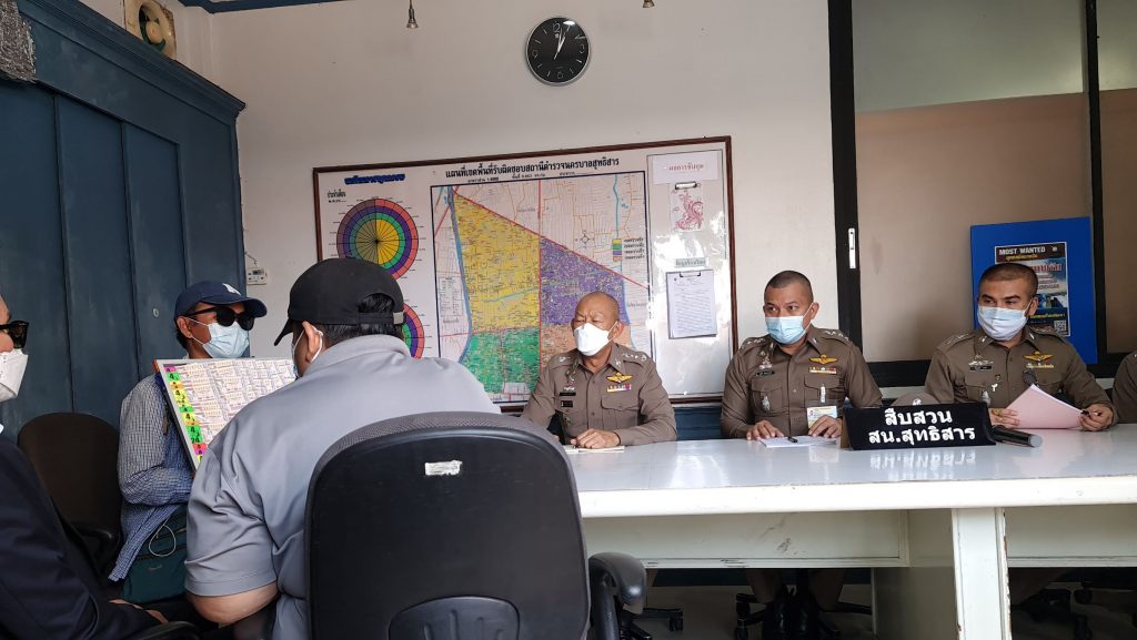 วันที่ 7 พ.ค.64 เวลา 13.00 น.: พล.ต.ท.จิรพัฒน์ ภูมิจิตร จเรตำรวจ สบ.8 ปฎิบัติงาน บชน. เดินทางมายัง สน.สุทธิสาร เพื่อสอบปากคำ น.ส.สุมาลี เมืองปลื้ม อายุ 57 ปี ผู้ต้องหาตามหมายจับศาลแขวงพระนครเหนือ หลังก่อเหตุขโมยสลากกินแบ่งรัฐบาลจากนายเทวา ปะนาเส พ่อค้าล็อตเตอรี่ซึ่งเป็นผู้พิการทางสายตา บริเวณสถานีรถไฟฟ้าใต้ดินสุทธิสาร