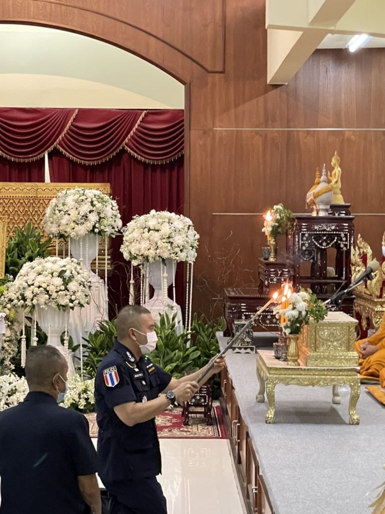 ร่วมพิธีพระราชทานน้ำหลวงอาบศพ และพิธีสวดอภิธรรม พ.ต.ท.วิญญู พันธุ สว.กก.3 บก.สส.สตม. ณ วัดตรีทศเทพ