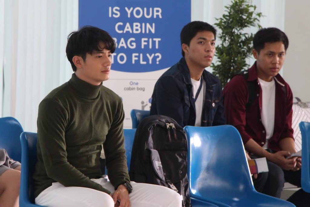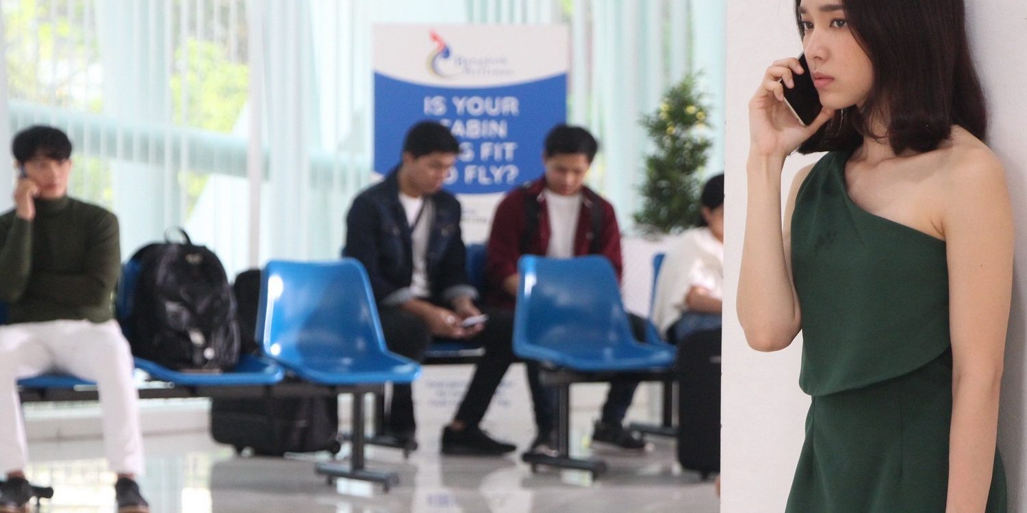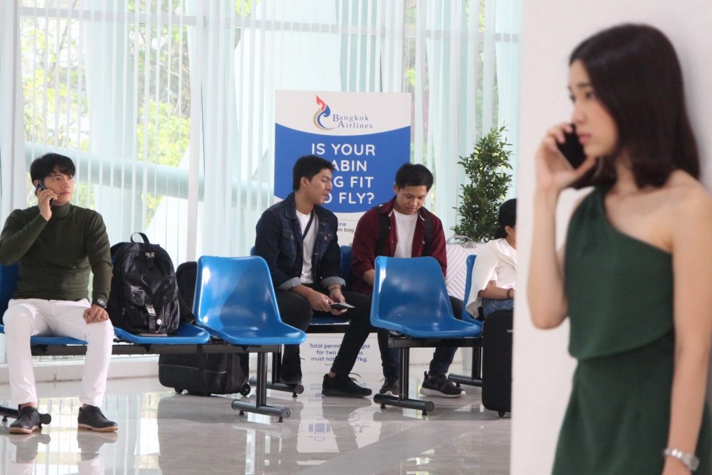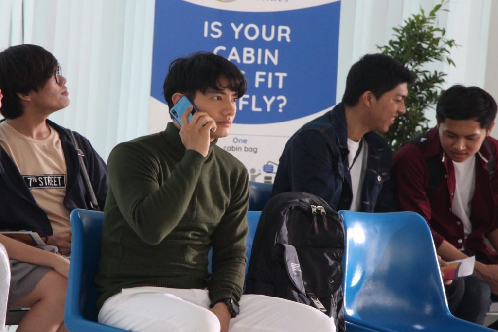 เรื่องดราม่าปนน้ำตาแบบนี้ ทีมงานเซ็ทฉาก ภณ อยู่ที่สนามบิน และกำลังจะขึ้นเครื่อง พิม ก็ดีดตัวเองจากที่นอน เพื่อจะมาส่ง ภณ แต่กลับซ่อนตัวไม่ให้ภณเห็น พิมโทรหาภณเพื่อบอกลา จนน้ำตาก็ไหลออกมาแบบไม่รู้ตัว ทั้งคู่จึงจากกันแบบไม่เคลียร์ ทั้งๆ ที่ พิม ก็รู้ว่า ภณ คิดกับตนอย่างไร ส่วน ภณ ก็รู้แล้วว่าพิมรู้เรื่องที่ตนแอบรักแบบไม่ใช่เพื่อนอีกต่อไปแล้ว ฉากนี้ทีมงานใช้ มหาวิทยาลัยรังสิต เป็นสถานที่ถ่ายทำ และเซ็ตเป็นฉากในสนามบิน โดยมีนักแสดงสมทบร่วมเฟรมประหนึ่งว่ามารอขึ้นเครื่องที่สนามบิน หนุ่มเป้ มาในชุดจัดเต็มพร้อมกระเป๋าเป้ใบใหญ่เตรียมขึ้นเครื่องเต็มที่ ส่วนสาวโมก็มาพร้อมกับอารมณ์เศร้า ผู้กำกับฯ อ๊อด – บัณฑิต ทองดี สั่งแอ็คชั่นเมื่อทุกอย่างพร้อม สาวโม ค่อยๆ หยิบมือถือขึ้นมา แล้วพูดบางสิ่งกับหนุ่มภณ โดยที่ภณหารู้ไม่ว่า พิม ยืนอยู่ใกล้ๆแถวนั้น ทั้งคู่ใส่อารมณ์ไม่ยั้ง ดราม่ามาแบบจัดเต็ม เศร้าไปอีก! ฉากนี้ใช้เวลาไม่นาน เพราะทั้งหนุ่มเป้และสาวโมก็ทำการบ้านกันมาอย่างดี