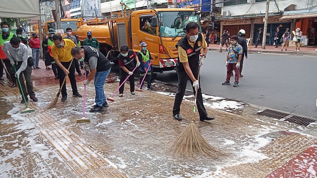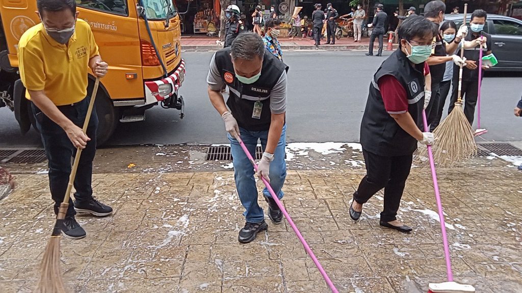 ผอ.เขตพระนคร จัดกิจกรรม Big Cleaning Day ล้างทำความสะอาด เเละ ประชาสัมพันธ์ผู้ประกอบการร้านค้า เพื่อป้องการการระบาด Covid-19 บริเวณ ตลาดส่งเสริมเกษตรไทย ตลาดยอดพิมาน..