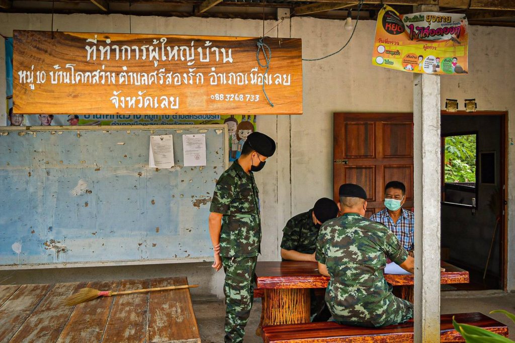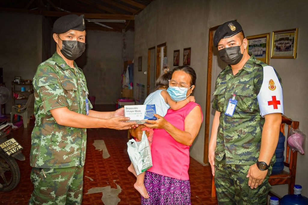 โดยทางด้านกองพันทหารราบที่ 1 กรมทหารราบที่ 8 ค่ายศรีสองรัก อ.เมือง จ.เลย พันโท ประดิษฐ์ พรมเรียน ผู้บังคับกองพันทหารราบที่ 1 กรมทหารราบที่ 8 (ผบ.ร.8 พัน 1 ) ได้สนองตอบนโยบาย ผบ.ร.8 และกองทัพบกอย่างต่อเนื่องได้จัดหาหน้ากากอนามัยให้กับกำลังพลทุกนาย และส่วนหนึ่งมอบให้จัดกำลังพลจิตอาสาและเสนารักษ์ ลงพื้นที่ชุมชนรอบค่ายค่ายศรีสองรัก บ้านโคกสว่าง ต.ศรีสองรัก อ.เมือง จ.เลย แจกจ่ายหน้ากากอนามัยให้กับประชาชน โดยเฉพาะกลุ่มผู้สูงวัยที่มีภูมิต้านทานโรคต่ำ เสี่ยงต่อการติดเชื้อได้ง่าย พร้อมทั้งการประชาสัมพันธ์ สร้างการรับรู้ เน้นย้ำ ให้ประชาชนตระหนักรู้ ในสถานการณ์ข้อมูลข่าวสารต่างๆ ในปัจจุบันในการดำเนินกิจกรรมในนั้นยังคงอยู่ภายใต้มาตรการป้องกันการแพร่ระบาดของโรคติดเชื้อไวรัสโคโรนา 2019 (COVID-19) อย่างเคร่งครัด