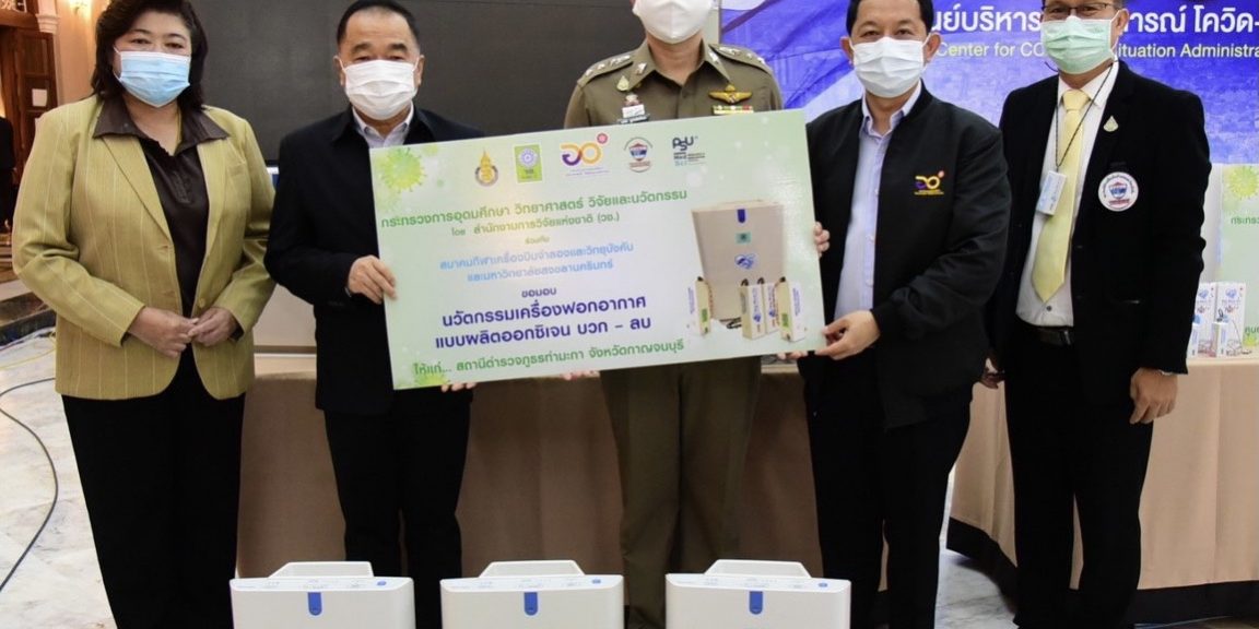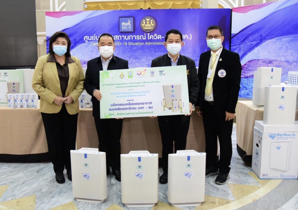 กระทรวงการอุดมศึกษา วิทยาศาสตร์ วิจัยและนวัตกรรม (อว.) ส่งมอบ “นวัตกรรมเครื่องฟอกอากาศแบบผลิตออกซิเจน บวก-ลบ” นวัตกรรมที่ได้รับทุนสนับสนุนจากสำนักงานการวิจัยแห่งชาติ (วช.) ดำเนินการ โดยสมาคมกีฬาเครื่องบินจำลองและวิทยุบังคับ และมหาวิทยาลัยสงขลานครินทร์ เพื่อร่วมรับมือการระบาดของโรคติดเชื้อไวรัสโคโรนา 2019 หรือ โควิด-19