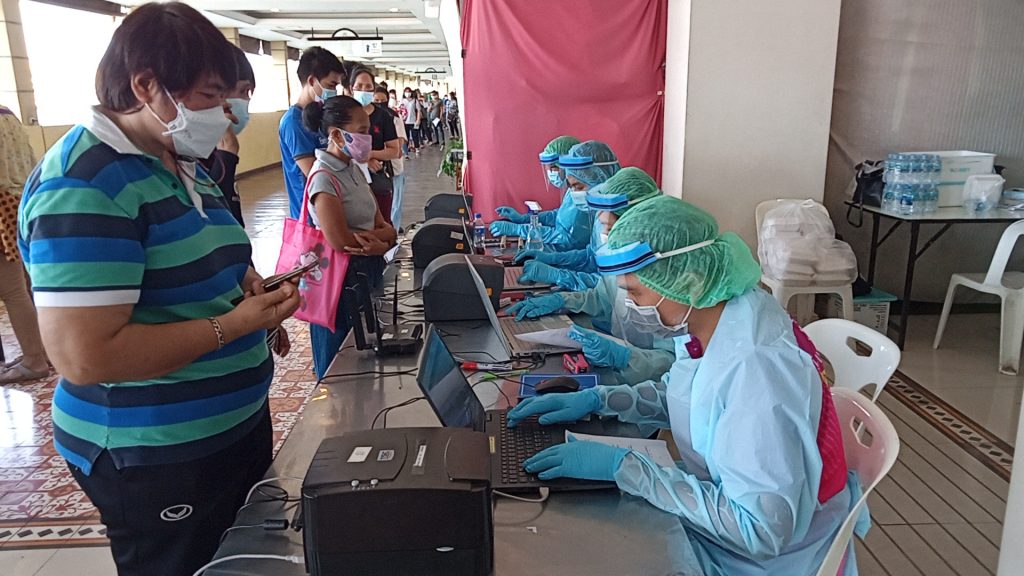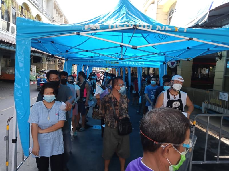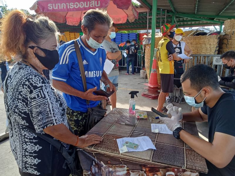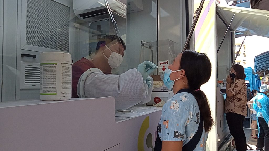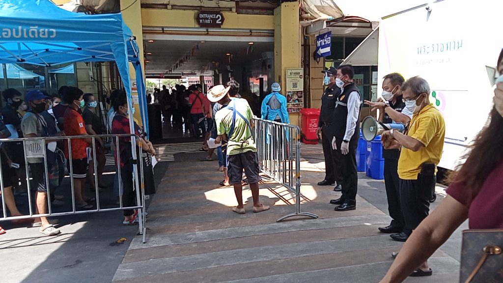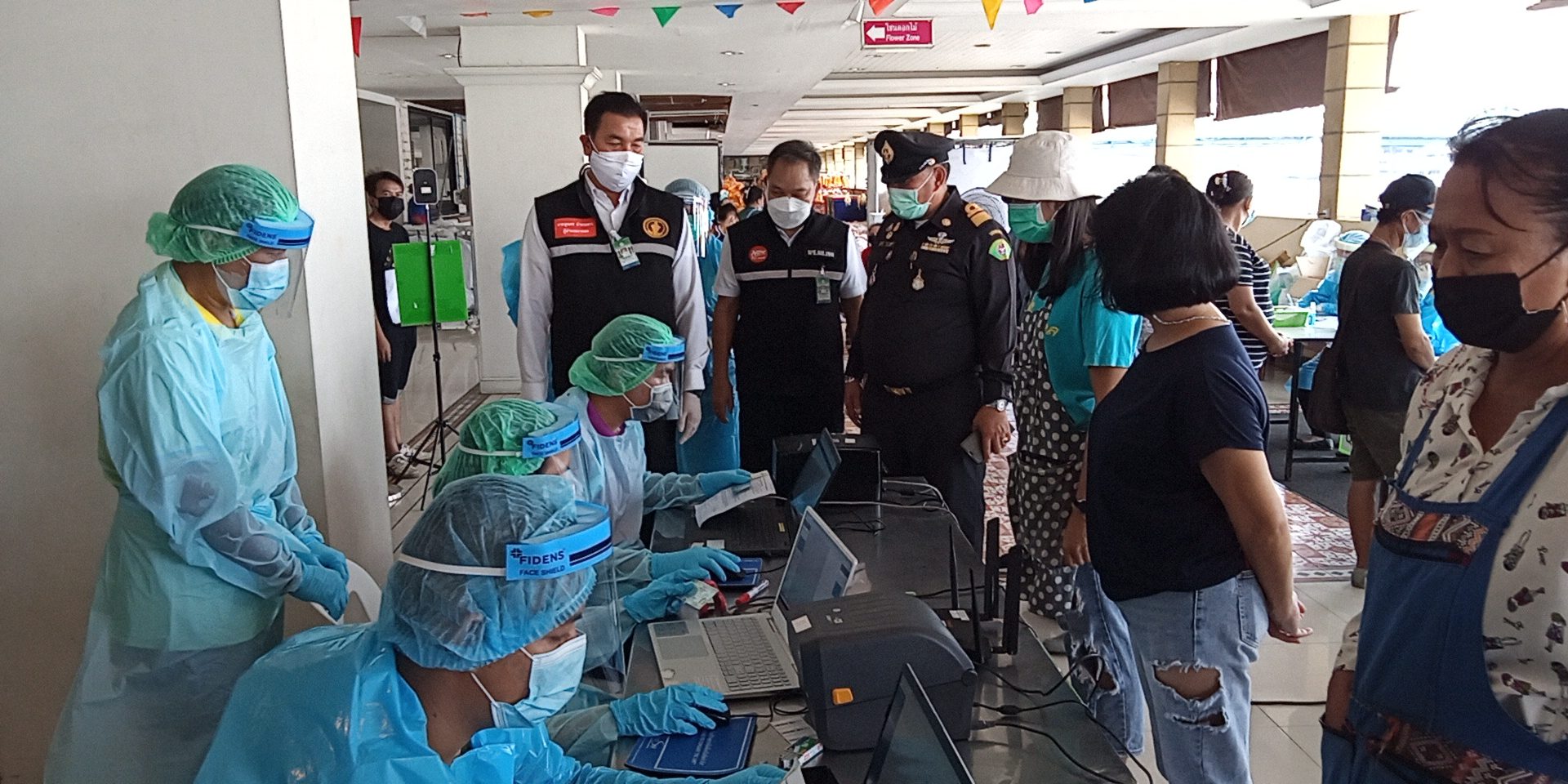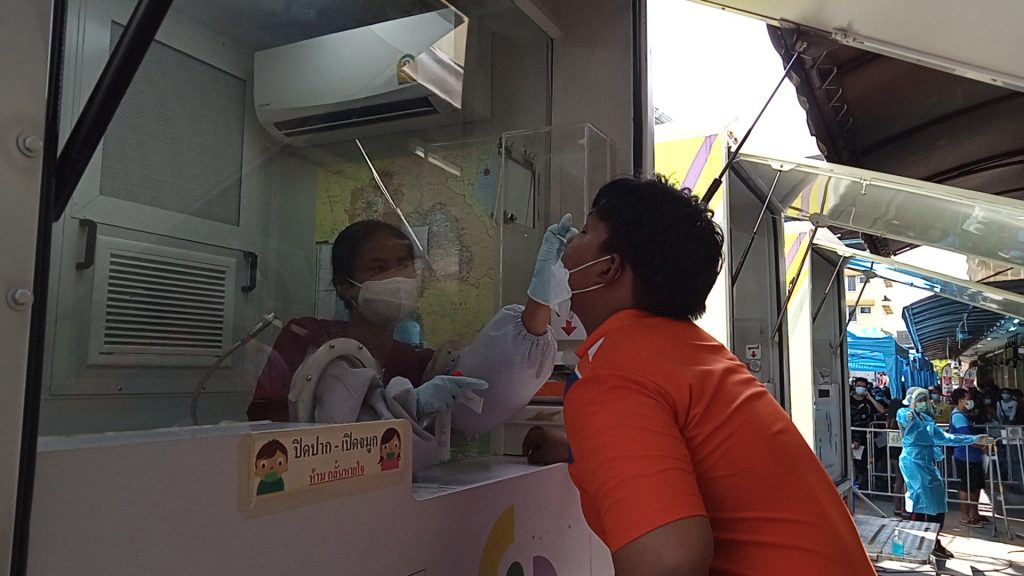 (19พ.ค.64) สำนักงานเขตพระนคร ร่วมกับ ศูนย์บริหารสาธารณสุข 1 สะพานมอญ และสถาบันป้องกันโรคเขตเมือง (สปคม.) ตรวจคัดกรองเชิงรุกโควิด-19 ให้กับประชาชนในย่านปากคลองตลาด จำนวน 1,000 คน โดยได้รับพระกรุณาธิคุณจากพระบาทสมเด็จพระเจ้าอยู่หัว โปรดเกล้าฯ พระราชทานรถเก็บตัวอย่างชีวนิรภัย จำนวน 3 คัน ตู้ตรวจ 2 ตู้ และเจ้าหน้าที่สถาบันป้องกันโรคเขตเมือง (สปคม.) กรมควบคุมโรค เก็บตัวอย่างสารคัดหลั่งด้วยวิธีการ SWAB นำส่งตรวจวิเคราะห์ เพื่อค้นหาผู้ติดเชื้อโควิด-19 เพิ่มเติม และนำตัวเข้าสู่ระบบการรักษาต่อไป