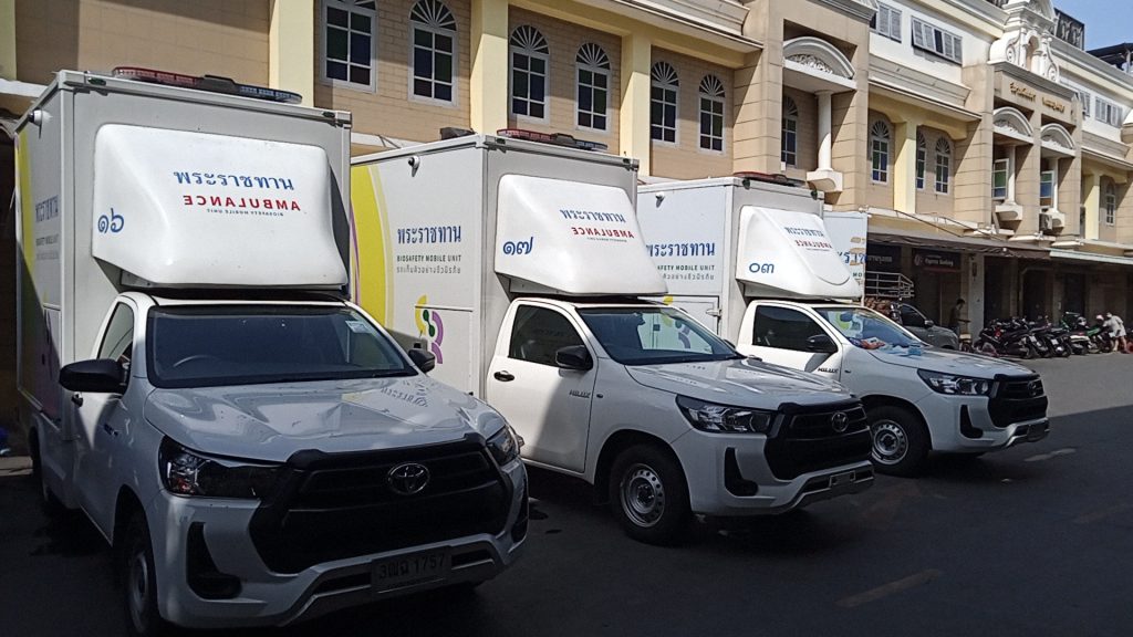 พระบาทสมเด็จพระเจ้าอยู่หัว ทรงมีพระมหากรุณาโปรดเกล้าฯ พระราชทานรถเก็บตัวอย่างชีวนิรภัยให้กรุงเทพมหานครนำมาให้บริการตรวจคัดกรองเชิงรุกโควิด-19 ให้กับประชาชน