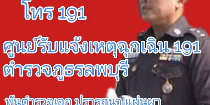 ท่านเห็นเหตุร้ายเหตุด่วนที่ใดแจ้งสายด่วน 191 ตำรวจภูธรลพบุรีใช้ประชาชน