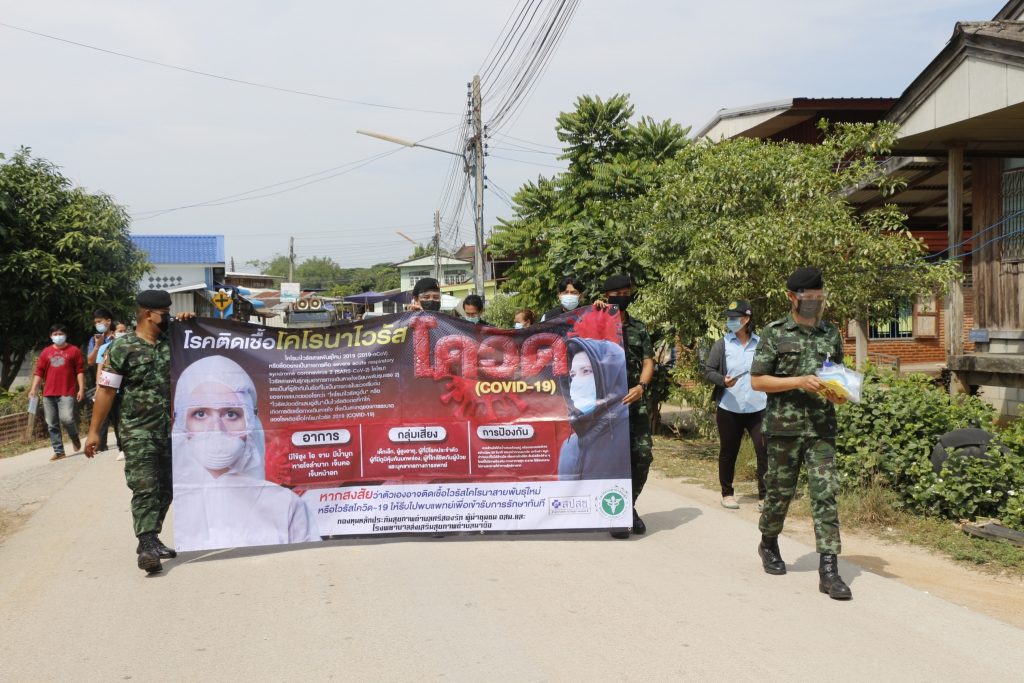 ขอนแก่น – ผบ.ร.8 ค่ายสีหราชเดโชชัย สนองตอบนโยบาย ผบ.ทบ. จัดกำลังพลหมอทหารเดินเท้า ลงพื้นที่ประชาสัมพันธ์รณรงค์ฉีดวัคซีน พร้อมมอบหน้ากากาอนามัย และเวชภัณฑ์ ป้อกัน COVID-19