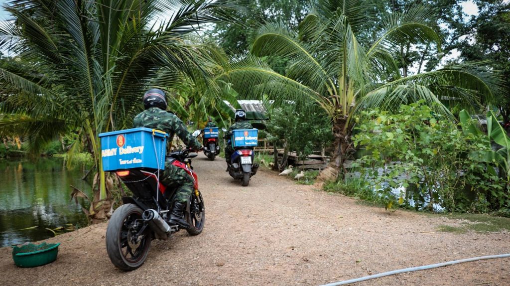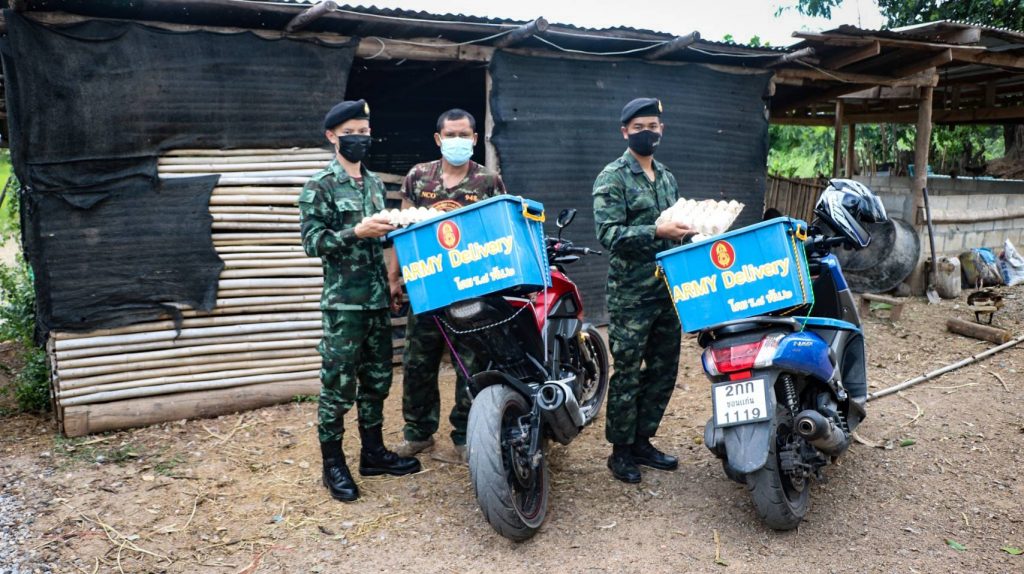 โดยทางด้านกองพันทหารราบที่ 2 กรมหารราบที่ 8 ค่ายมหาศักดิพลเสพ อ.ชุมแพ จ.ขอนแก่น ซึ่งเป็นหน่วยขึ้นตรงของกรมหารราบที่ 8 พันโท อุเทน จีนทองหลาง ผู้บังคับกองพันทหารราบที่ 2 กรมหารราบที่ 8 (ผบ.ร.8 พัน.2 ) ได้สนองตอบนโยบายกองทัพบกและผู้บังคับบัญชาระดับสูงทันทีได้จัด Army Delivery ส่งมอบไข่เป็ดแก่ชุมชน ซึ่งเป็นผลผลิตจาก ศูนย์การเรียนรู้เศรษฐกิจพอเพียง กองพันทหารราบที่ 2 กรมหารราบที่ 8 นำ ลงพื้นที่ บ.ป่ากล้วย ต.โนนคอม อ.ภูผาม่าน จว.ข.ก. เพื่อช่วยเหลือและแบ่งเบาภาระค่าใช้จ่ายให้กับประชาชนที่อยู่ห่างไกล และไม่สะดวกในการเดินทางมาใช้บริการ ตู้ปันสุข ร.8 พัน.2 ซึ่งตั้งจุดบริการไว้ บริเวณหน้าค่ายฯ หน่วยฯ จึงจัดชุด Army Delivery นำไข่เป็ดสดๆ จากเล้าเป็ด ลงพื้นที่ส่งมอบความสุขถึงบ้าน