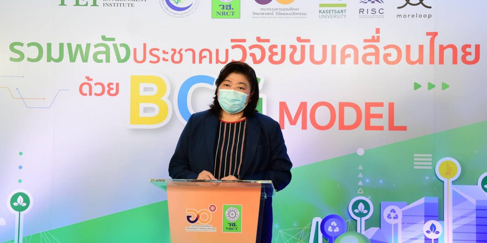 สำนักงานการวิจัยแห่งชาติ (วช.) กระทรวงการอุดมศึกษา วิทยาศาสตร์ วิจัยและนวัตกรรม (อว.) พร้อมด้วยสถาบันสิ่งแวดล้อมไทย,สำนักงานพัฒนาเศรษฐกิจจากฐานชีวภาพ (องค์การมหาชน),ศูนย์สร้างสรรค์งานออกแบบเพื่อสิ่งแวดล้อม มหาวิทยาลัยเกษตรศาสตร์ และ moreloop พร้อมด้วยประชาคมนักวิจัย รวมพลังเสนอทิศทางการขับเคลื่อนการพัฒนาประเทศไทย ด้วย BCG Model เพื่อนำไปสู่การพัฒนาที่เกิดประโยชน์ต่อประเทศอย่างยั่งยืนต่อไป