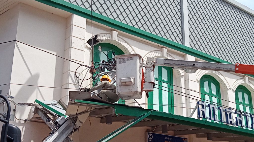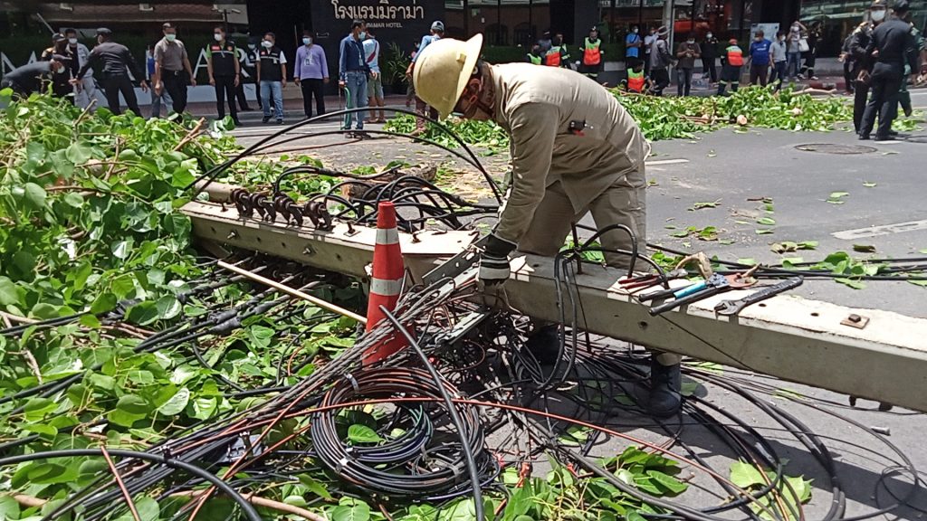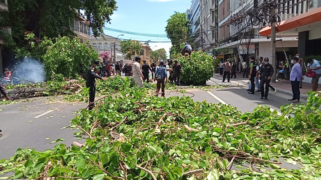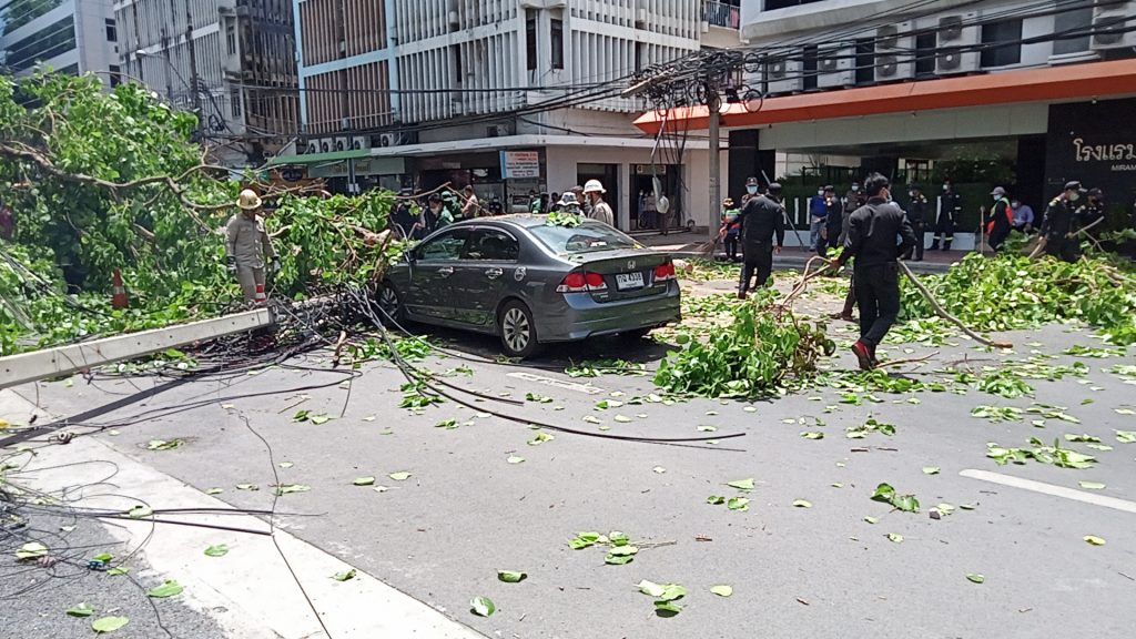 ทั้งนี้โดยที่เกิดเหตุพบต้นโพธิ์ยักษ์ อายุกว่า 100 ปี ความสูงประมาณ 20-30 เมตร หักโค่นทับเสาสายสื่อสารและสายไฟ โดยมีเจ้าหน้าที่การไฟฟ้าเข้าทำการตัดกระแสไฟเพื่อความปลอดภัย ในการปฏิบัติหน้าที่ ขณะสำนักงานเขตพระนครเข้าดำเนินการตัดกิ่งไม้ที่กีดขวางช่องทางจราจรบนถนนมหาชัย ทั้ง 4 ช่องทางที่ถูกต้นโพธิ์ล้มพาดถนน โดยเสาไฟฟ้า 1 ต้น ยังได้ล้มทับบริเวณกันสาดชานชาลาสถานีรถไฟใต้ดิน MRTสามยอด ด้วย